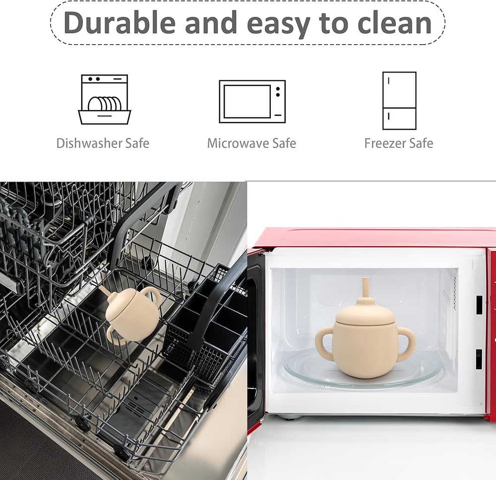 【تصميم قابل للفصل】 المصاصة قابلة للفصل، مما يسمح لك بتنظيف الكوب بسهولة، كما أن كوب المصاصة المصنوع من السيليكون للأطفال مناسب للاستخدام في الميكروويف والثلاجة، وآمن للاستخدام في غسالة الأطباق. يمكن أن تتحمل مادة السيليكون درجات حرارة تتراوح من -40 فهرنهايت إلى 446 فهرنهايت، وهي مناسبة لكل من المشروبات الباردة والساخنة.
