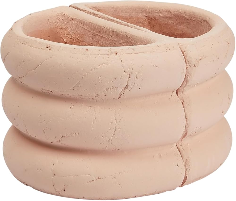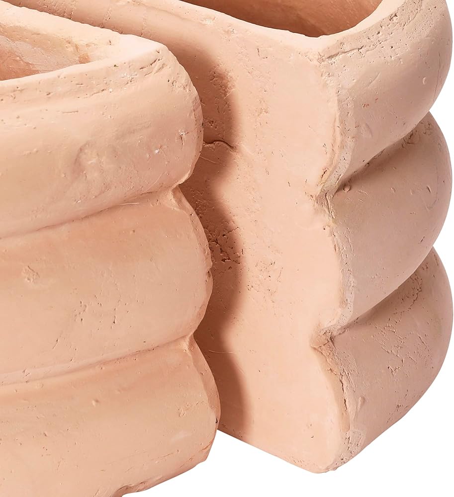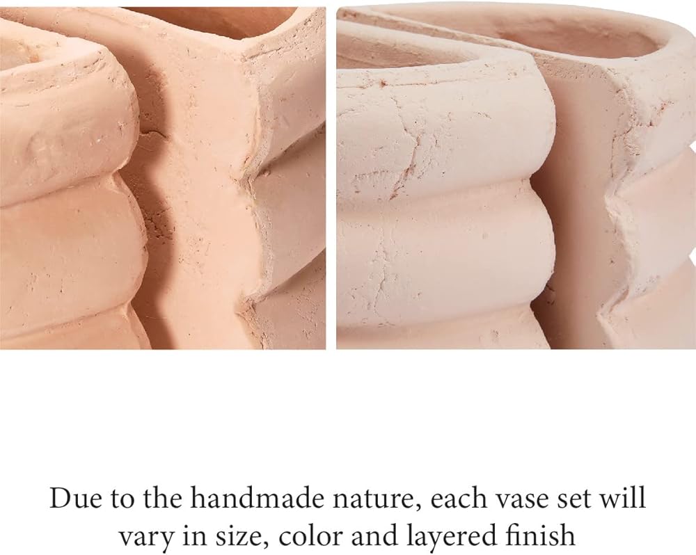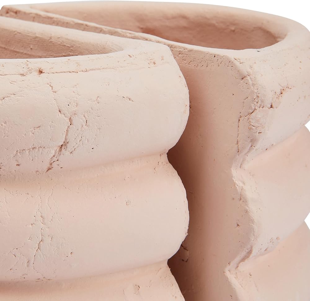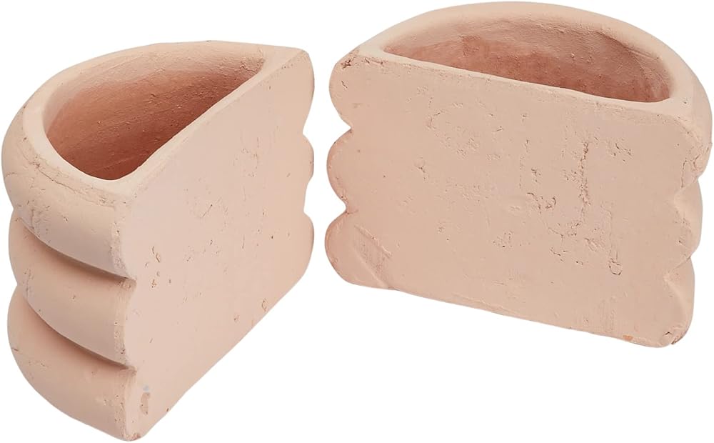 Set of 2 carved stack terracotta vase bookends in blush; Each piece features a one-of-a-kind, naturally variating finish