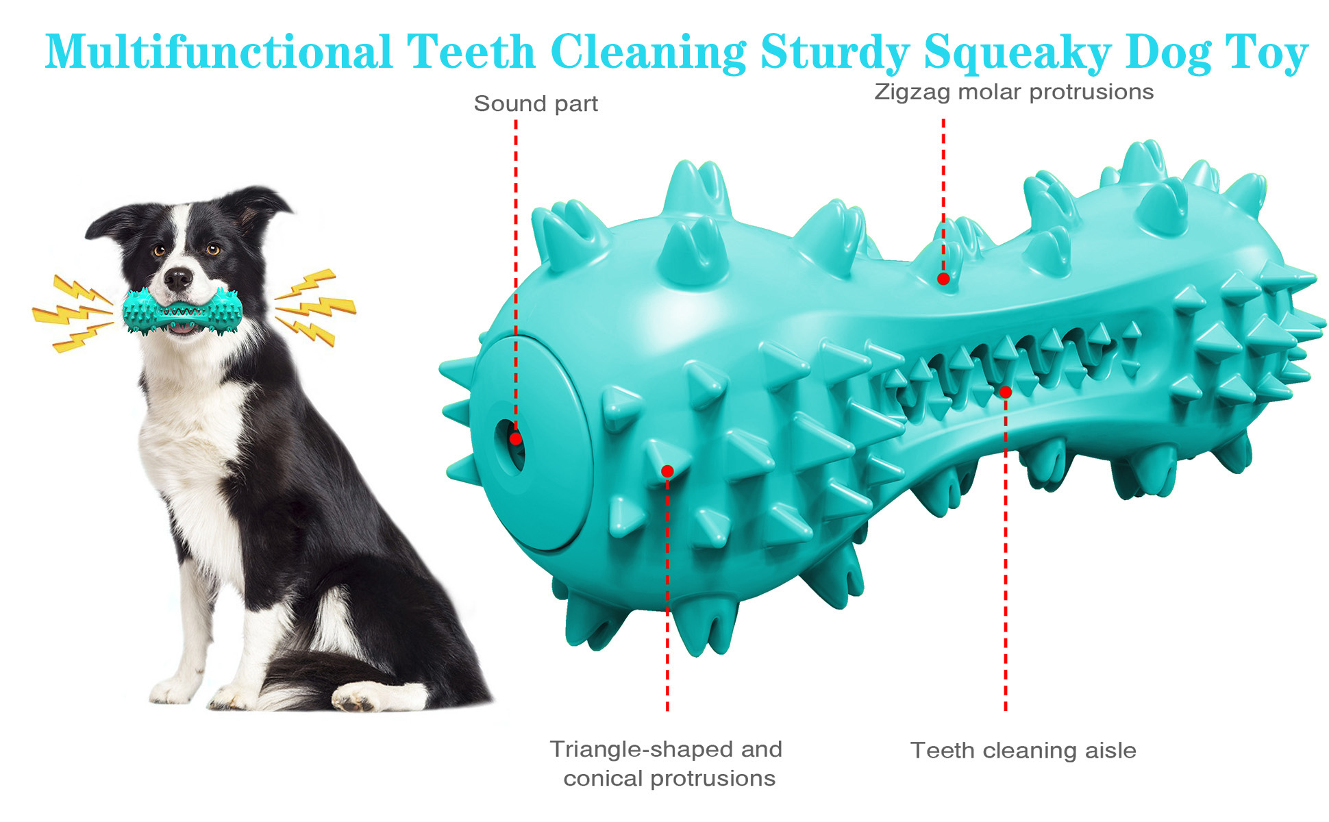 Squeaky toy:our product is a toy with built-in sounding devices at both ends, which squeaks when the dog chews.