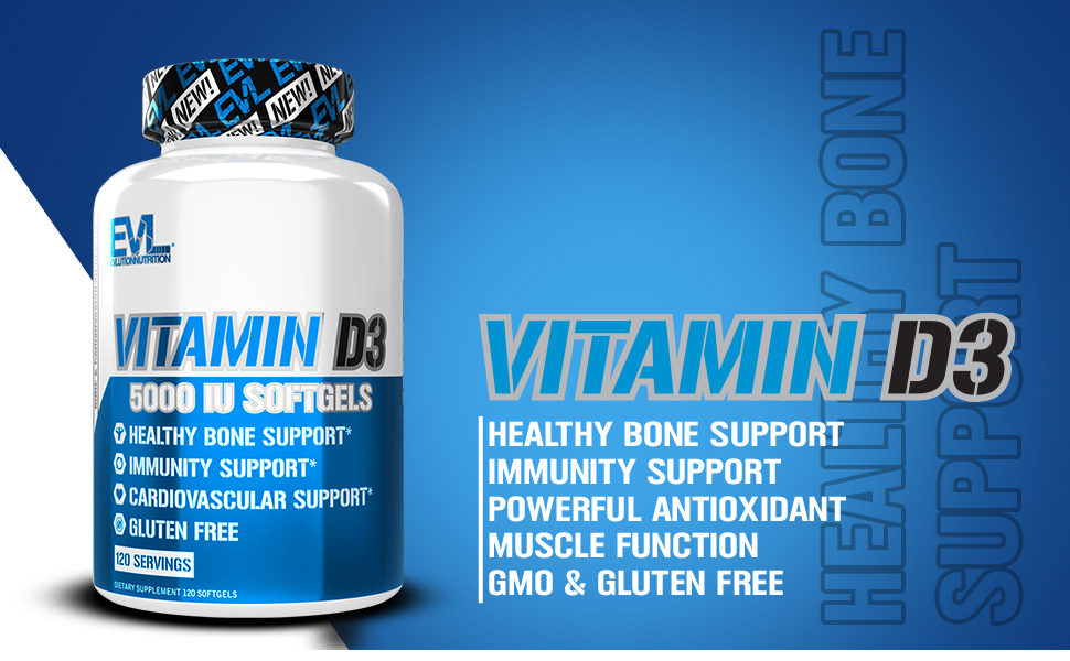 Evlution Nutrition فيتامين د3، 5000 وحدة دولية، قوة عالية، دعم العظام والمفاصل، صحة الجهاز المناعي، غير معدل وراثيًا وخالي من الغلوتين، حجم القيمة (120 حصة)