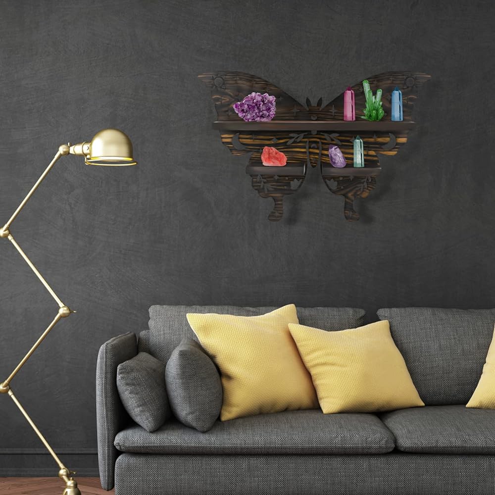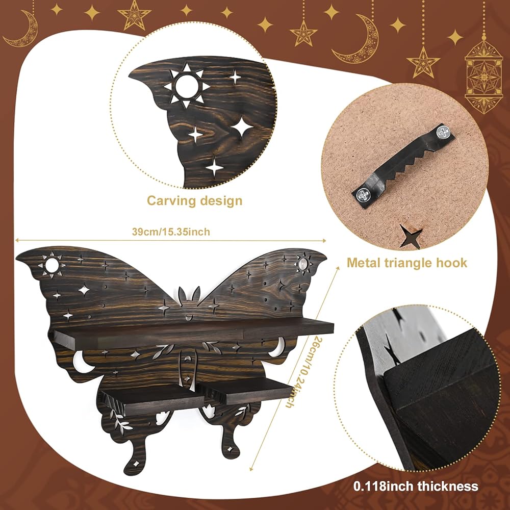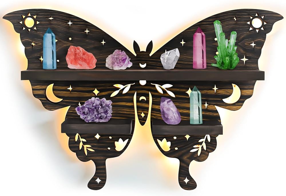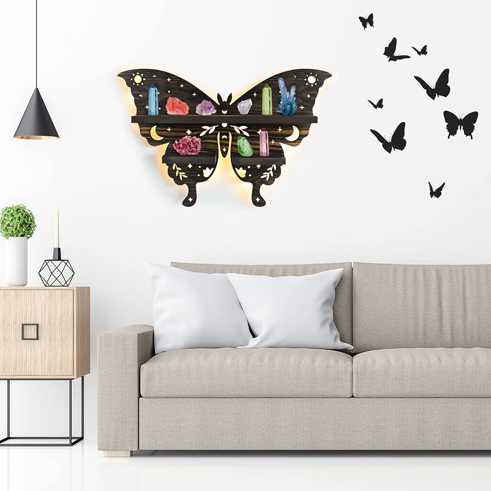 تصميم الفراشة الفريد: تم تصميم هذا الرف الكريستالي حصريًا من قبلنا على شكل فراشة، مع شريط ضوئي قابل للالتصاق. يتم الجمع بين الفراشات الراقصة ونمط القمر والشمس الذي يبدو مقدسًا تحت إضاءة الأضواء. يمكن أن تجلب لك السحر والسعادة والحظ السعيد.
