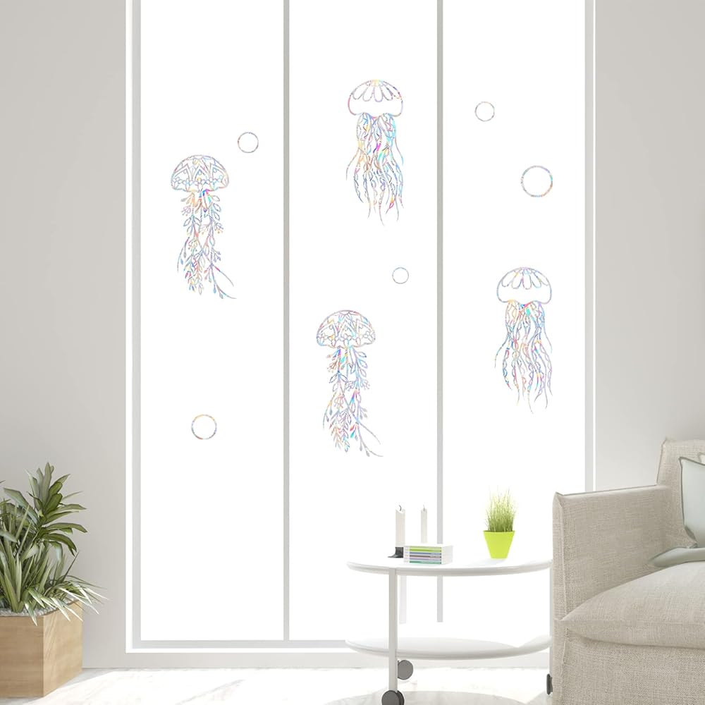 4 قطع لاصقة نافذة قنديل البحر لضربات الطيور - ملصقات النوافذ المضادة للصدمات لإنقاذ الطيور من التصادم النافذة، ملصقات النوافذ غير المنشورية من الفينيل غير اللاصق، ملصقات قوس قزح