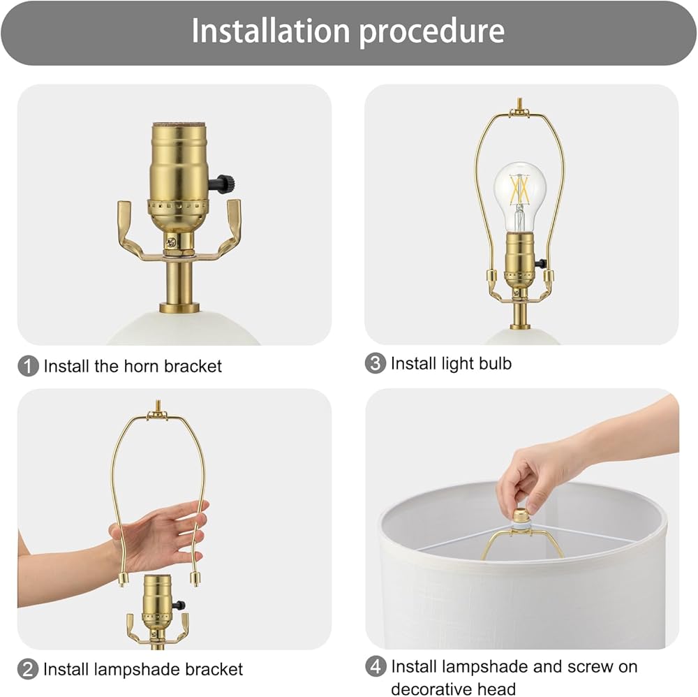 Product: Standard U-shaped horn saddle and detachable lamp shade holder, plus a classic hat shaped lamp finial; You can easily repair your lamps, and the lamp tail is easily screwed on and off, if you want to keep the existing saddle seat, the saddle can be removed.