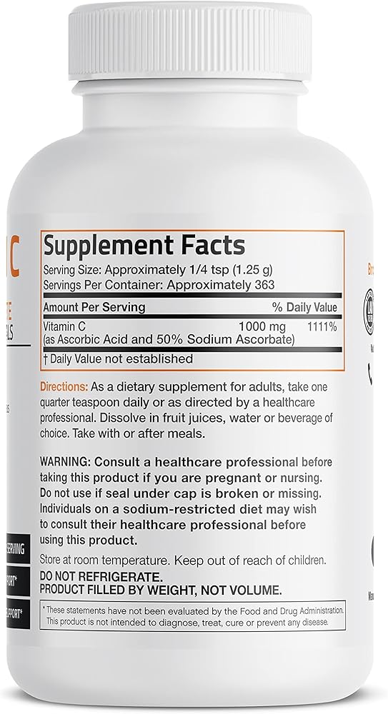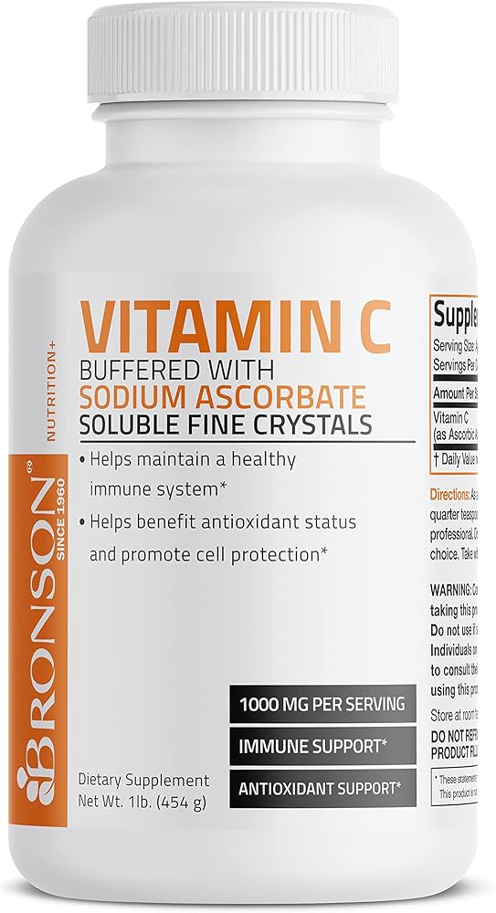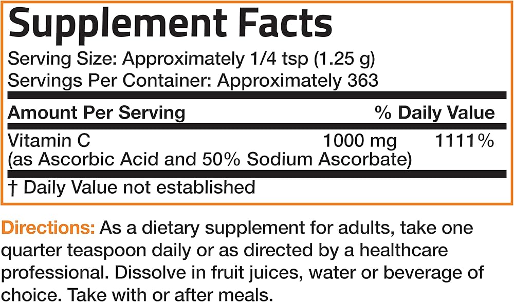 مسحوق فيتامين C المخزن وحمض الأسكوربيك المخزن مع بلورات أسكوربات الصوديوم الدقيقة القابلة للذوبان - يعزز نظام المناعة الصحي وحماية الخلايا - مضاد أكسدة قوي - رطل واحد (16 أونصة)