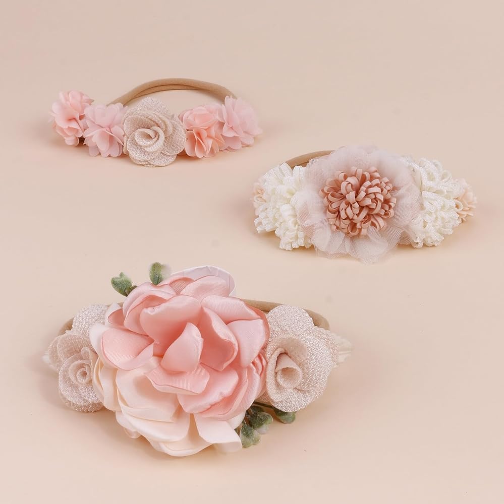 mligril Baby Girl Flower Headbands Set-Elastic Hair Band Crown Flower Wraps for Newborn Infant Toddler 3Pcs