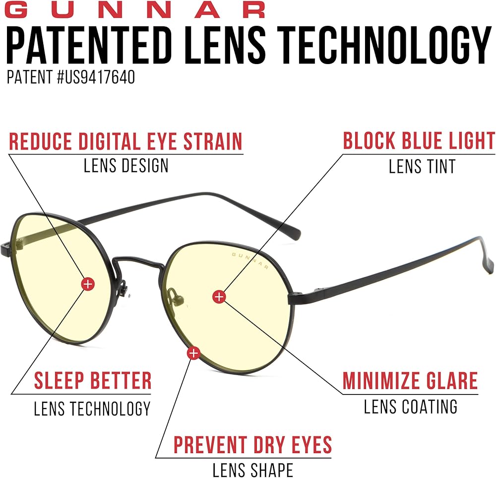 • Gunnar produces the only blue light blocking computer and Gaming glasses with Patented Lens (#9417460) Technology that is recommended by doctors to protect and enhance your vision.