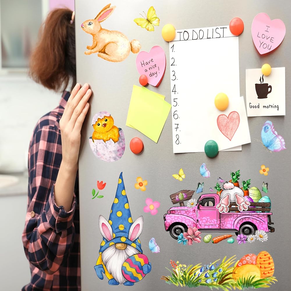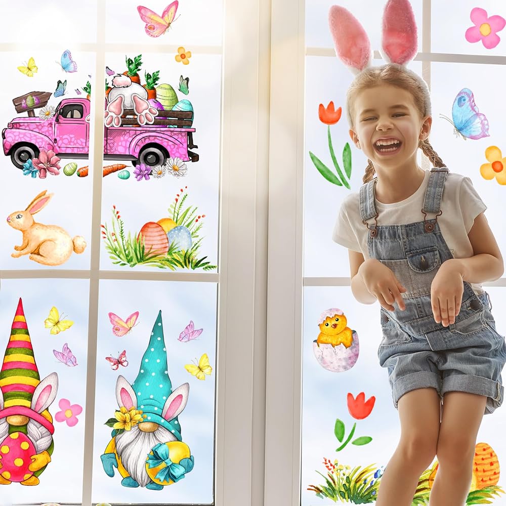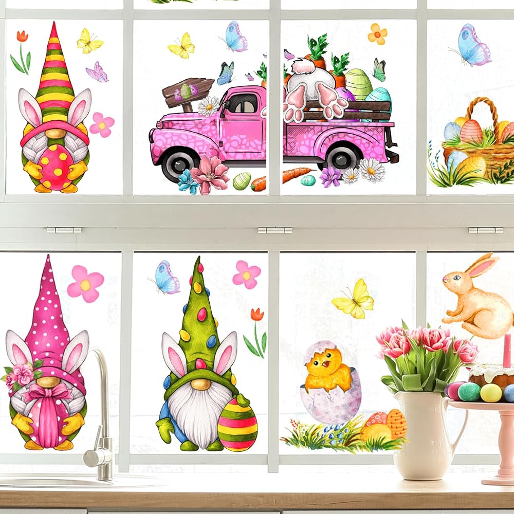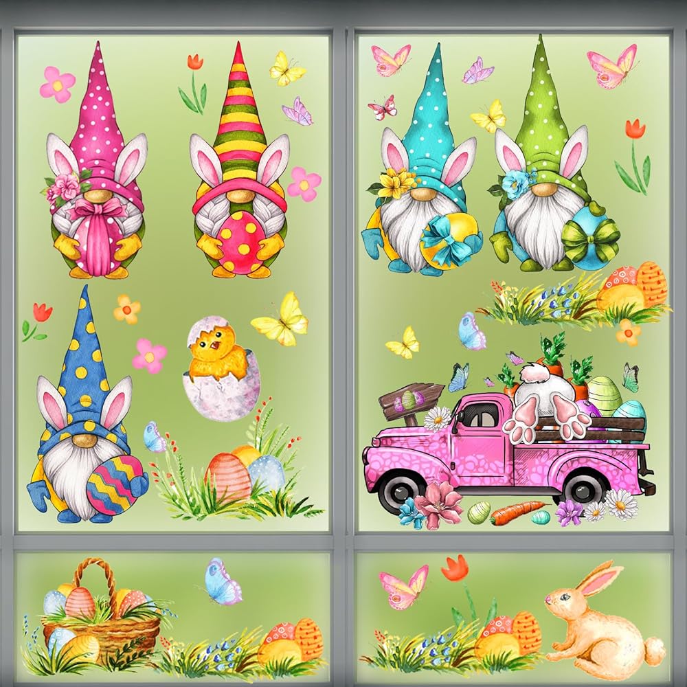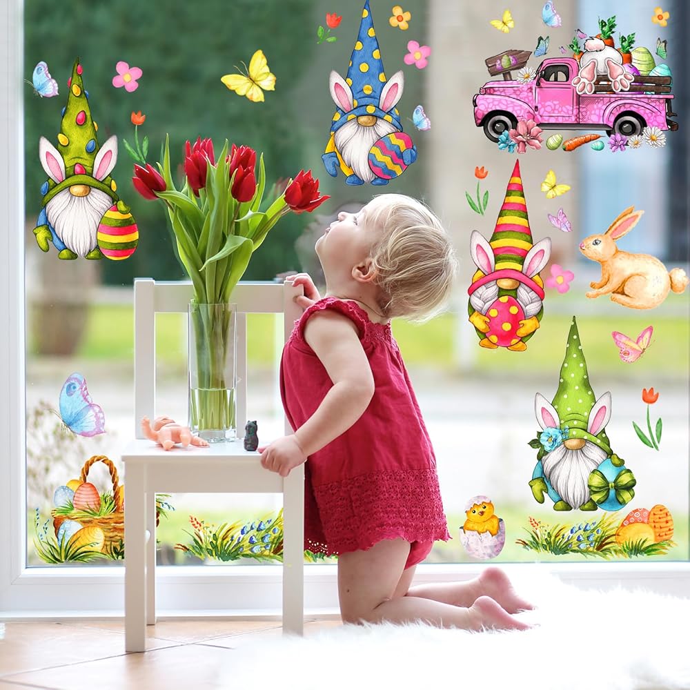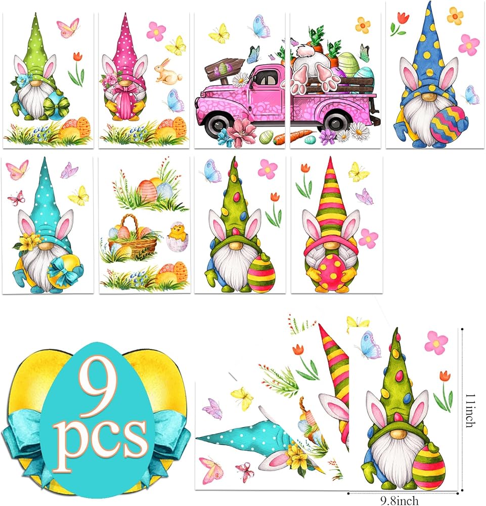 🐰 زينة عيد الفصح السعيد: سوف تحصل على 9 ملصقات نافذة على شكل قزم عيد الفصح، كل منها بحجم مختلف لتلبية احتياجاتك المختلفة، مما يجعلها زينة ممتازة للعطلة!