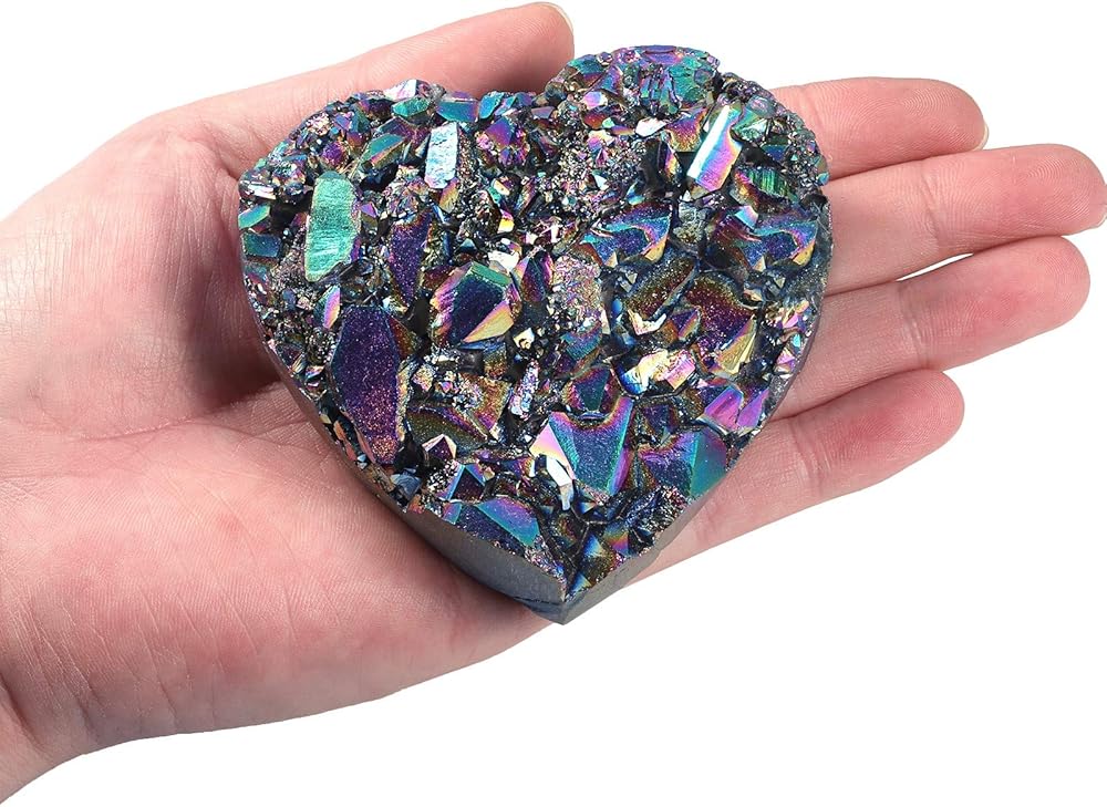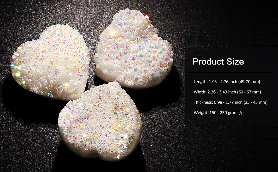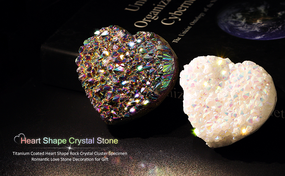 مجموعة الجيود الكريستالية الطبيعية: لقد تم استخدام قلبنا البلوري من التيتانيوم عالي الجودة المطلي من الكريستال الصخري الطبيعي. تحت الضوء، ستظهر الكريستال على شكل قلب ألوانًا رائعة مختلفة من زوايا مختلفة. حيث أن كل بلورة لها جمالها الخاص. يرجى السماح بالاختلاف الطبيعي في الحجم والملمس. دعونا نستمتع بخلق الطبيعة الأم.