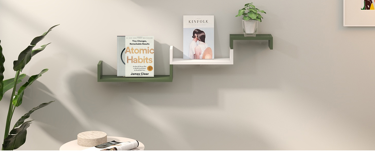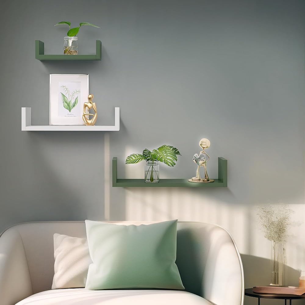 Color Contrast Wall shelves never have looked so stylish! They come in a white sage green color contrast, adding a touch of elegance to your living room, bedroom.