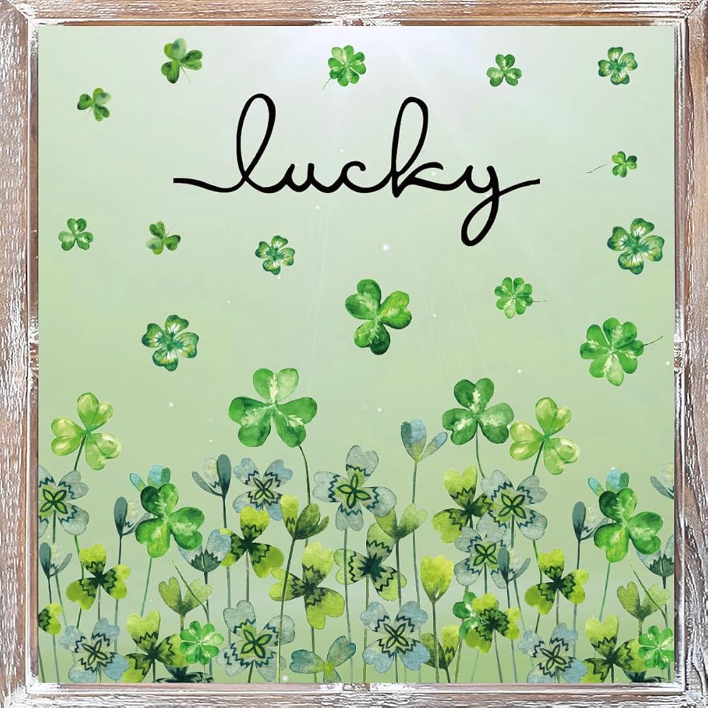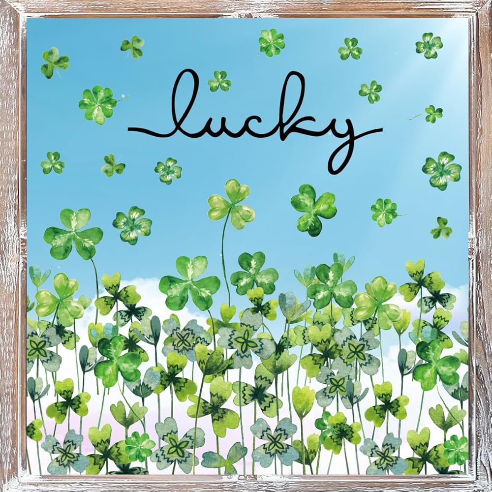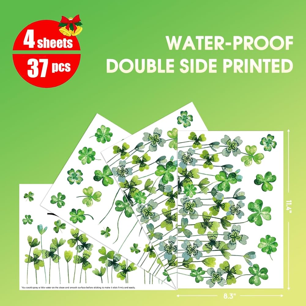 Horaldaily 37 قطعة ملصق نافذة عيد القديس باتريك، نبات النفل الأيرلندي المحظوظ لمستلزمات الحفلات المنزلية، متجر زجاج النافذة لتزيين العرض