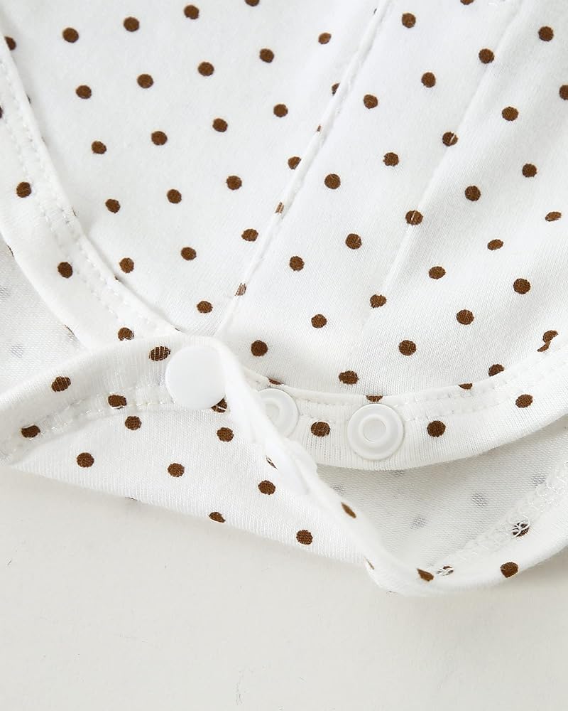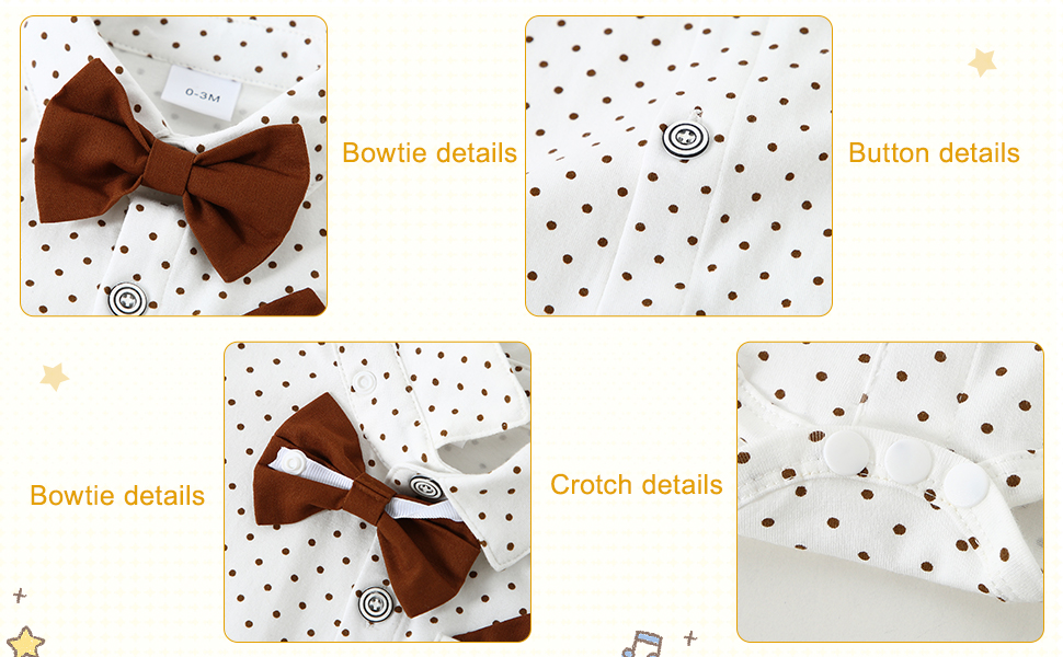 تصميم التصميم: يحتوي هذا القميص على أزرار عند الفخذين لسهولة الارتداء وتغيير الحفاضات، ويضمن السروال عالي التمدد ملاءمة مريحة ومريحة. فيونكة وقبعة يمكن ارتداؤها تحسن اللمسة النهائية العصرية لملابس الأولاد حديثي الولادة بالكامل.