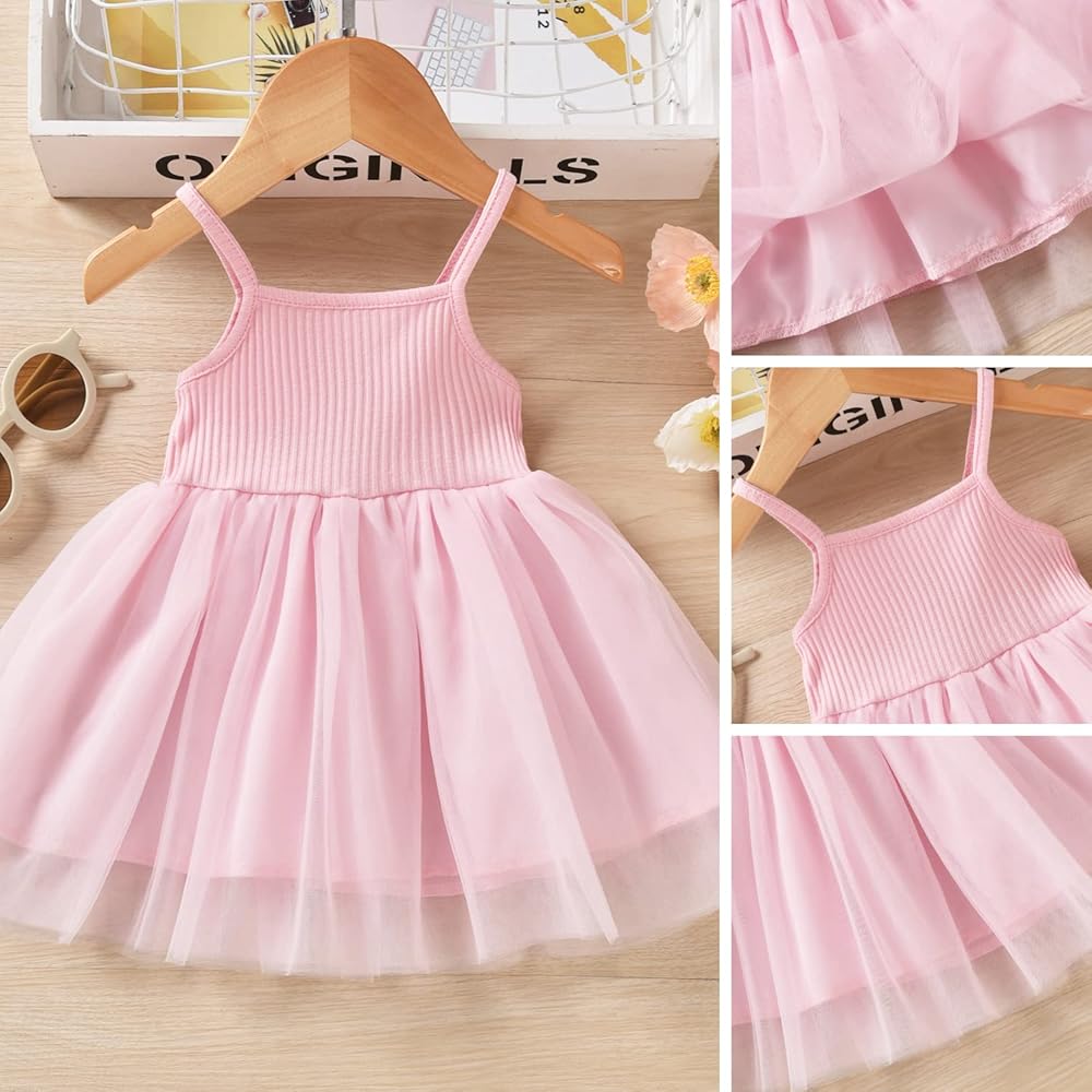 ❤تصميم جميل: هذا الفستان ذو الحزام السباغيتي مصنوع من القطن المضلع وثلاث طبقات من التل الناعم وبطانة تنورة مريحة. فستان حبال بدون أكمام مناسب أكثر للرضع لارتدائه في أيام الصيف الحارة. خصر مطاطي لملاءمة أفضل. تصميم الخصر المطوي/المدخن و3 طبقات من التول الناعم يجعلها تنورة منفوشة من التول. وتجعل أميرتك الصغيرة تبدو أكثر جاذبية وحلوة وأنيقة! هذا هو فستان الأميرة الجميل للفتيات!