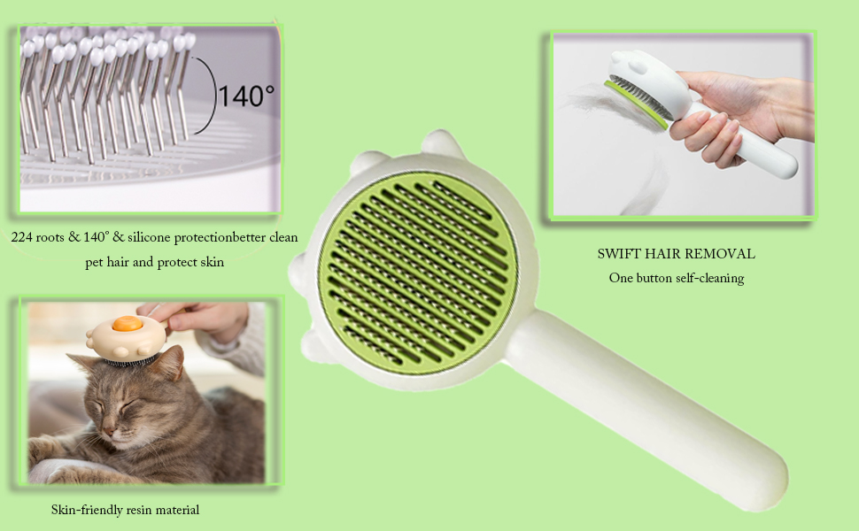 • 【فرشاة قطط ذاتية التنظيف】اضغط على الزر يمكن أن يساعدك على إزالة الشعر المتساقط المتجمع في الشعيرات، وهو فعال لإبقاء منزلك بعيدًا عن الشعر العائم عند تنظيف حيواناتك الأليفة.