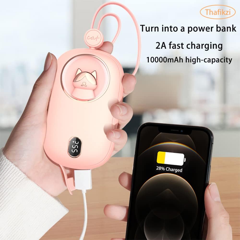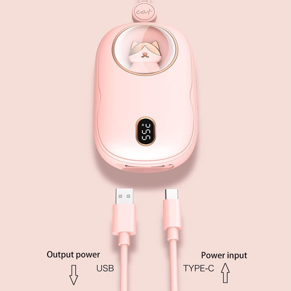 شاحن محمول لطيف بقوة 10000 مللي أمبير في الساعة، جهاز تدفئة اليد قابل لإعادة الشحن، 3 مستويات للحرارة، تسخين على الوجهين مع سخان شاشة رقمية، شحن سريع، أضواء ملونة للطاقة المتنقلة 3 في 1