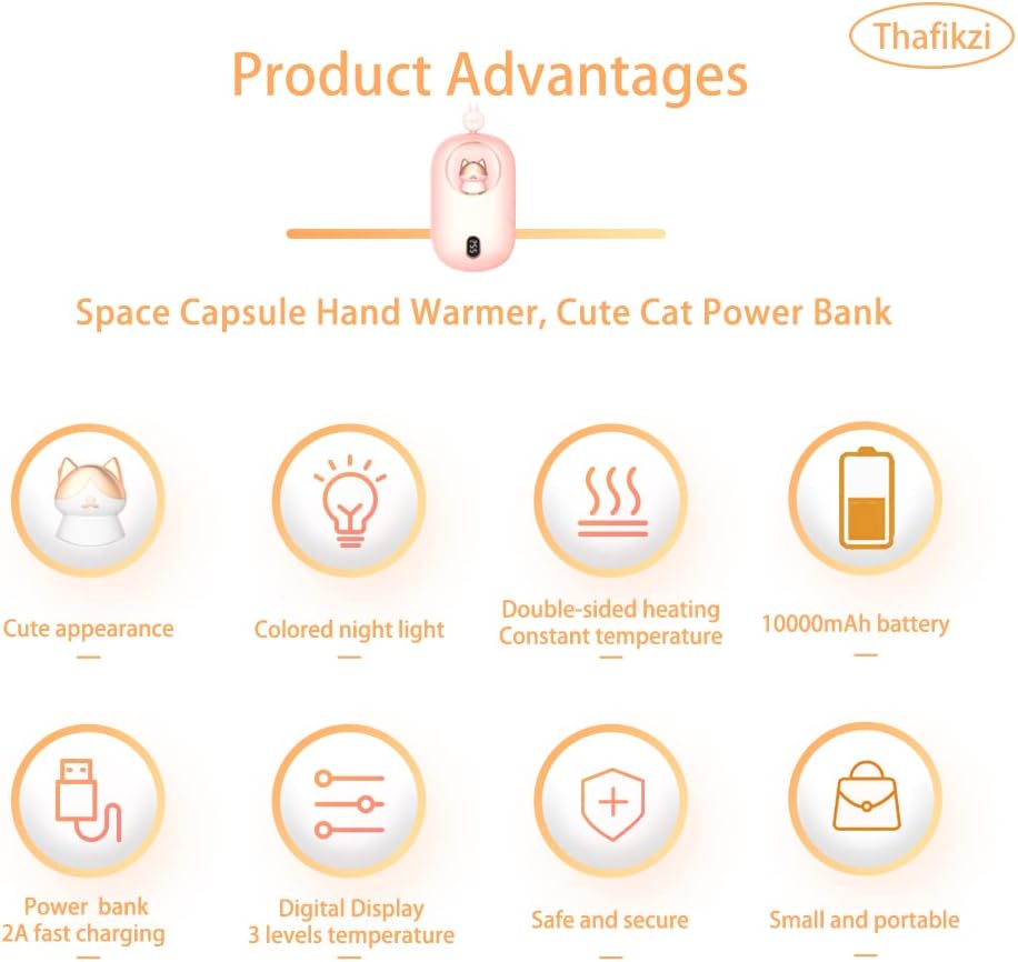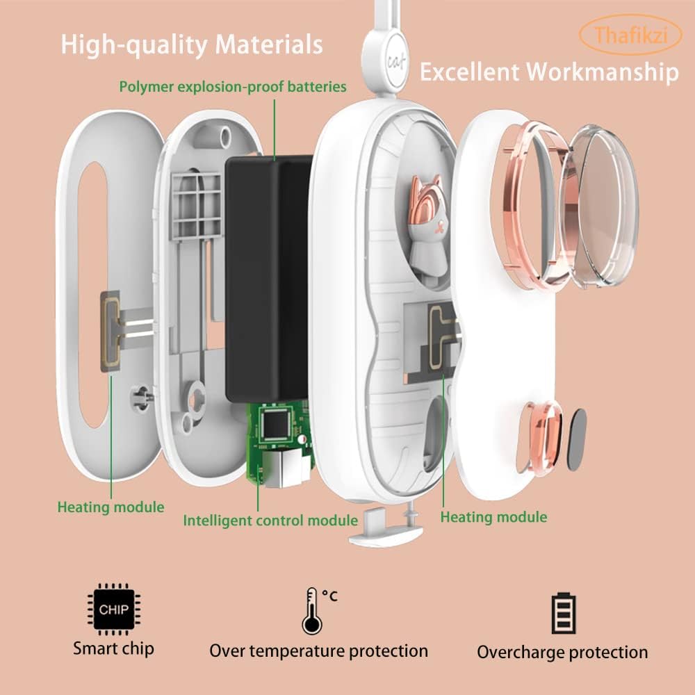 【وظيفة 3 في 1】 يدمج مصدر الطاقة المحمول اللطيف لتدفئة اليد هذا وظائف متعددة مع عبوة لطيفة. جهاز تدفئة اليد ذو المظهر اللطيف هو أيضًا بنك طاقة سريع الشحن بقدرة 2000 مللي أمبير، كما أنه يحتوي على أضواء ملونة جميلة، والتي يمكن استخدامها كضوء ليلي خافت.