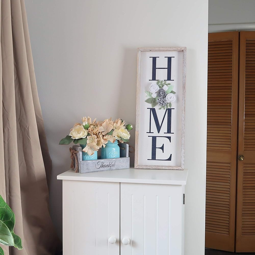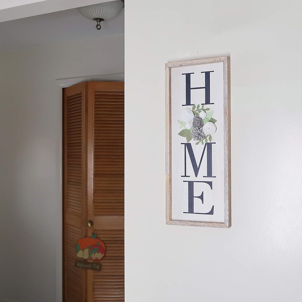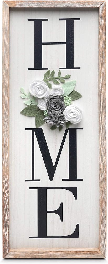 HOME DECOR SIGNS - Wall decor home sign 21.7''H x8.6''W x 1.2''D with a beautiful Felt flower in place of “O” will add a stylish touch to your home décor. Rustic brown wood finish with wording“Home” paired with sentiment of hope and inspiration
