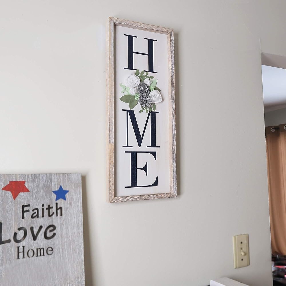 GBtroo Home with Felt rose sign is the perfect way to make any space just a little more welcoming. Hang it in your entryway to welcome family, friends. Or give it as a gift for new home owners. A very versatile piece of sign wood frame and work great in entryways, dining rooms, bedroom, living rooms!