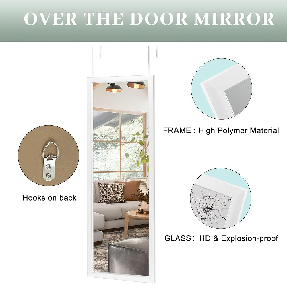 توفير المساحة: تم تصميم مرآة الباب بالبساطة والدقة، مما يوفر انعكاس كامل الطول لرؤية الجسم؛ هذا النوع من المرايا عملي للغاية وعملي لمساحة معيشتك، مما يوفر المساحة الخاصة بك عن طريق وضع المرآة فوق الباب.