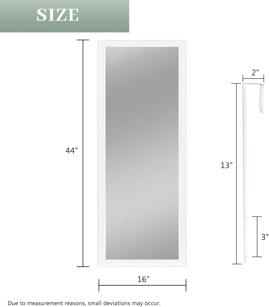 حجم مرآة الباب: المرآة 44 بوصة × 16 بوصة خفيفة وسهلة الحركة هنا وهناك. يمكن تعليقها عموديًا باستخدام الخطافات.
