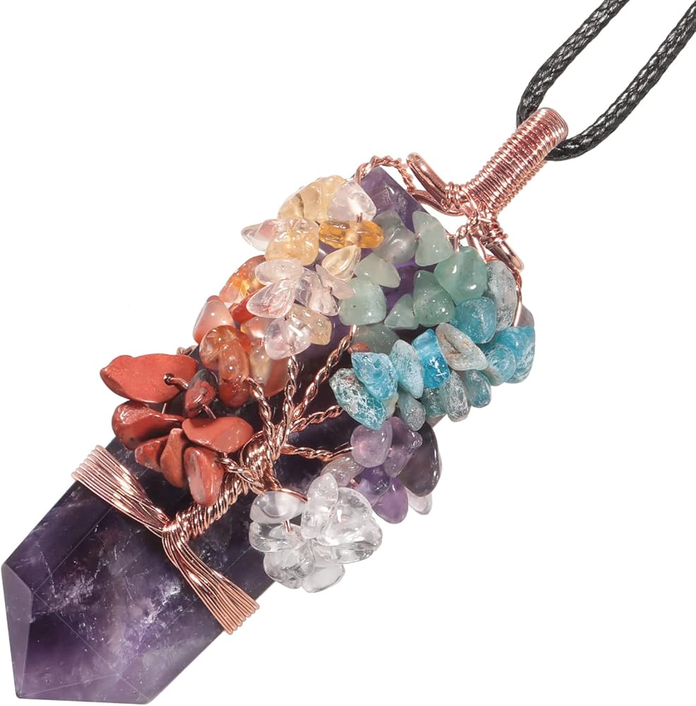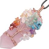قلادة من حجر مدبب: هذه القلادة الكريستالية مصنوعة من نقطة كريستال مصقولة و7 أحجار من رقائق الشاكرا وسلك نحاسي. شجرة الحياة المكونة من 7 شاكرا مصنوعة يدويًا ملفوفة حول نقطة الكريستال، مليئة بالطاقة الإيجابية، وتظهر نمطًا أنيقًا. لقد قمنا بمطابقة كل قلادة بسلسلة من الفولاذ المقاوم للصدأ مطلية بالذهب الوردي، والتي سيكون من السهل جدًا مطابقتها مع أي من ملابسك.