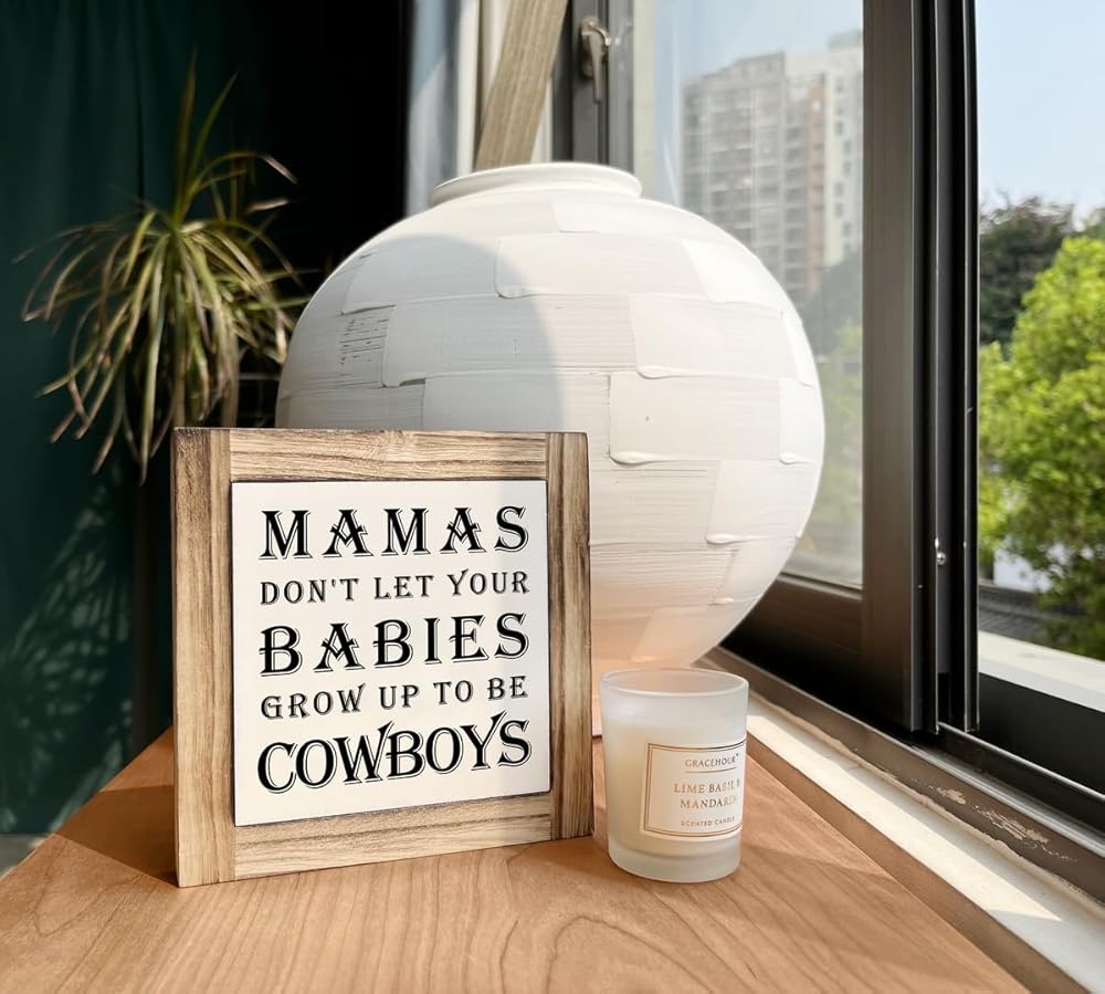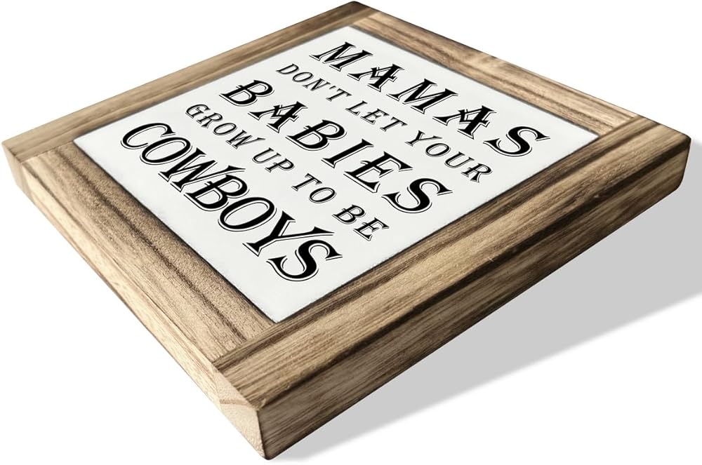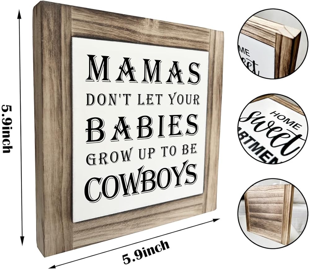 لافتات خشبية ملهمة، ديكور مكتب لويحات خشبية على شكل صندوق، ديكور غرفة نوم حضانة الأطفال حديثي الولادة، لافتات فنية للطاولة، لوحة زخرفية للمنزل، ماما لا تدع أطفالك يكبرون ليصبحوا رعاة بقر