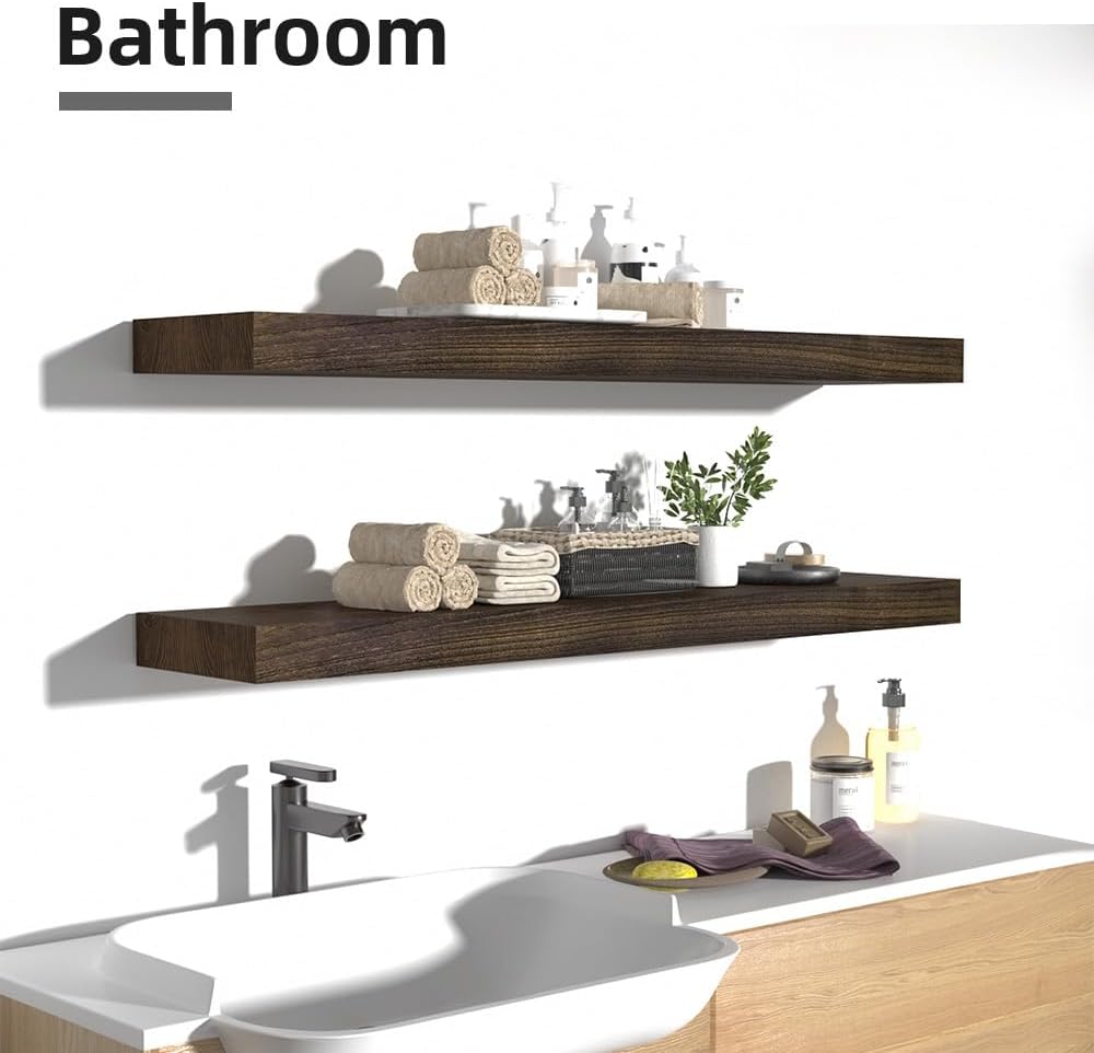 ارفف عائمة، رف حائط خشبي للحمام والمطبخ وغرفة النوم، ديكور منزلي خشبي، دعامة معلقة غير مرئية، طول 30 انش، خشب الجوز الداكن