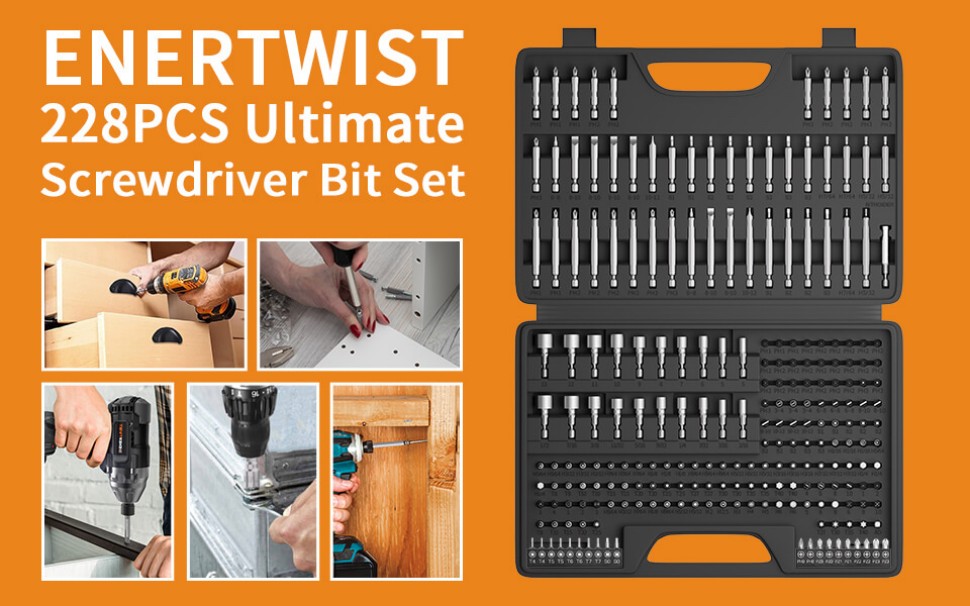 اينيرتويست مجموعة لقم مفك براغي من 228 قطعة، ساق سداسية CR-V 1/4 انش تتضمن رؤوس امان نادرة ومفك صواميل وحامل لقم مغناطيسي، مجموعة رؤوس مفك مثالية مع صندوق ادوات قوي