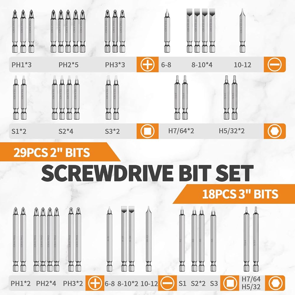 【رؤوس رؤوس متعددة الاستخدامات】 تأتي مجموعة الأدوات الخاصة بنا مجهزة برؤوس لقم بأحجام مختلفة، تتراوح من 1 انش إلى 3 انش، مناسبة للمهام المتنوعة. سواء كنت تعمل على الإصلاحات الإلكترونية أو التجميع المنزلي أو صيانة المركبات، فإن الأمر متروك للتحدي.