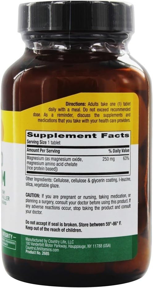 كانتري لايف مغنيسيوم مخلب 250 ملجم، 90 قرصًا