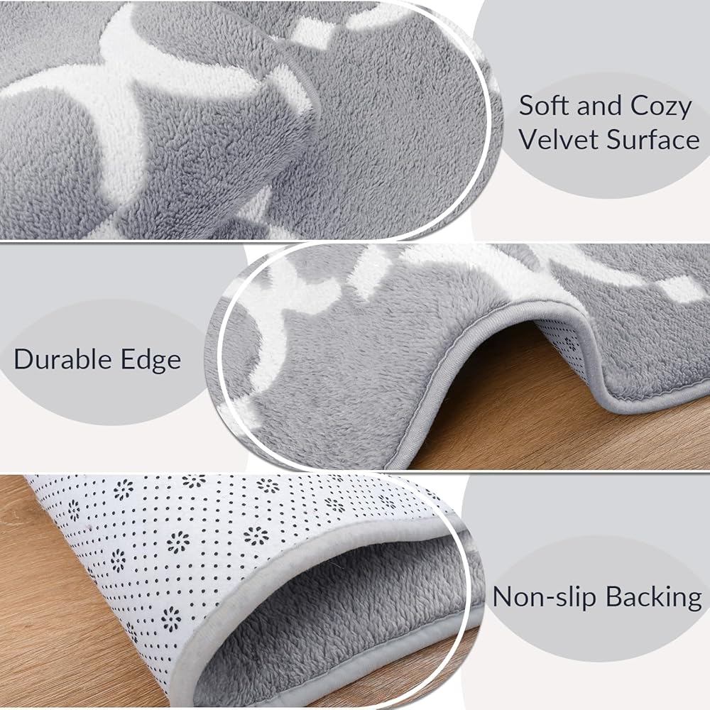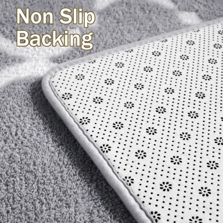 جودة فاخرة: سجادة غرفة النوم الفاخرة لدينا مصنوعة من ثلاث طبقات من المواد: الجزء العلوي عبارة عن كومة من الألياف الدقيقة عالية الكثافة ناعمة ومريحة الملمس، والساندويتش الأوسط يحتوي على إسفنج ميموري سميك لتوفير بعض التوسيد الإضافي لقدميك، و تم تصميم الجزء الخلفي بنقاط مقاومة للانزلاق لإبقاء السجادة ثابتة على الأرض