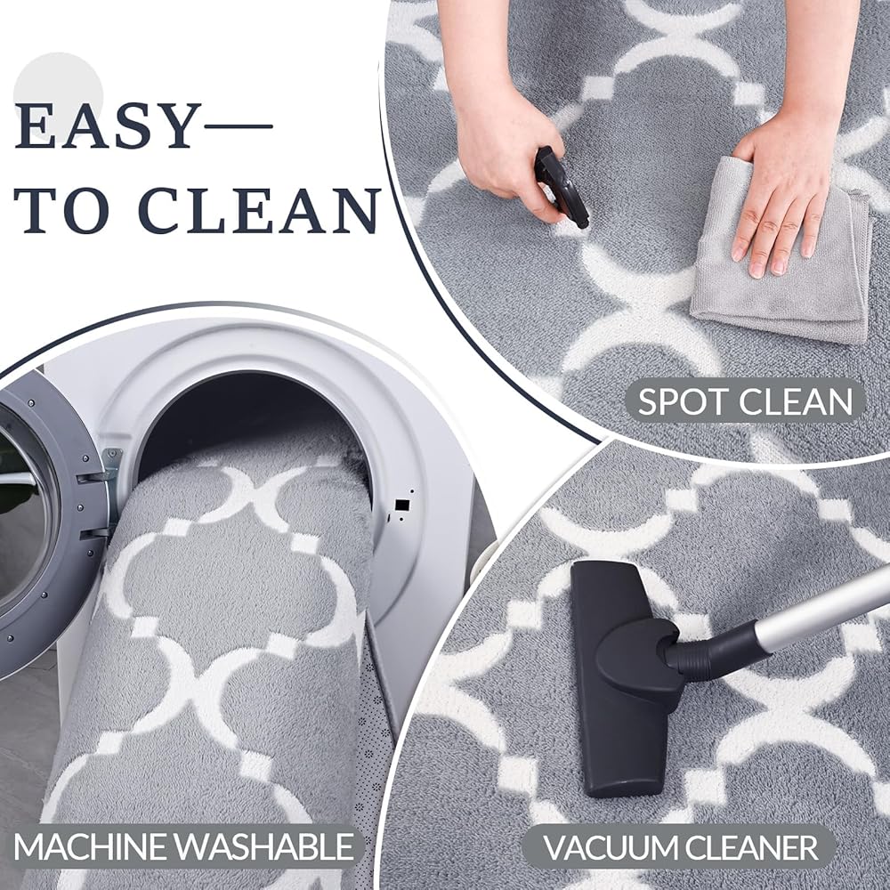 سهلة التنظيف: سطح سجادة الطفل مصنوع من كومة قصيرة آمنة ومقاومة للبقع وسهلة التنظيف للغاية، قم بهز السجادة الغامضة واستخدم مكنسة كهربائية للتنظيف اليومي. للحصول على تنظيف أعمق، ما عليك سوى غسلها في الغسالة بلطف بالماء البارد أو مسح البقع وتجفيفها بالهواء