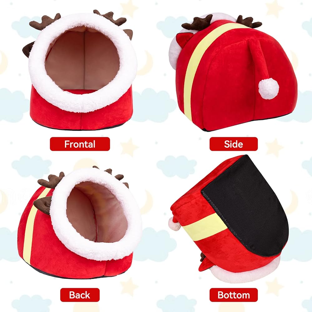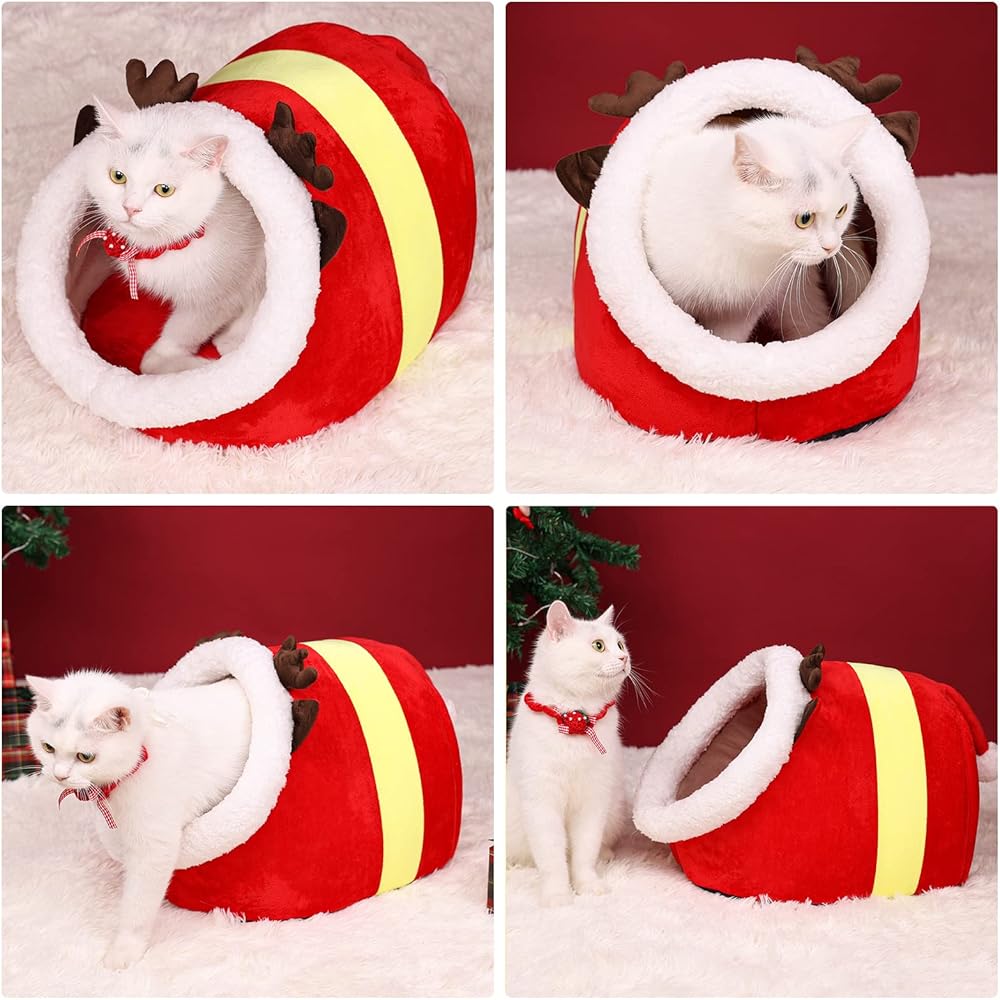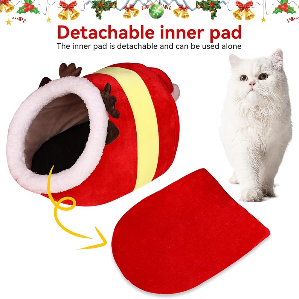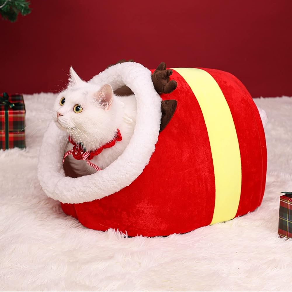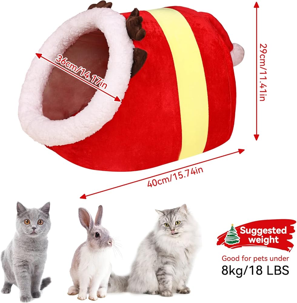 سرير للقطط في عيد الميلاد على شكل كهف، منزل للقطط، كوخ الإسكيمو لعيد الميلاد، كوخ للقطط، سرير كهف لطيف للحيوانات الأليفة للكلاب الصغيرة أو الأرنب (دائري - صغير)