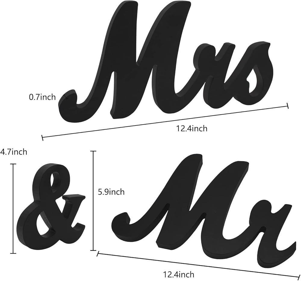 Large Size Mr & Mrs Sign ❤️: "Mr" letter -10" x 5.9" x 0.7" , "&" letter : 4.3" x 4.7" x 0.7", "Mrs" letter -12.2" x 5.9" x 0.7".
