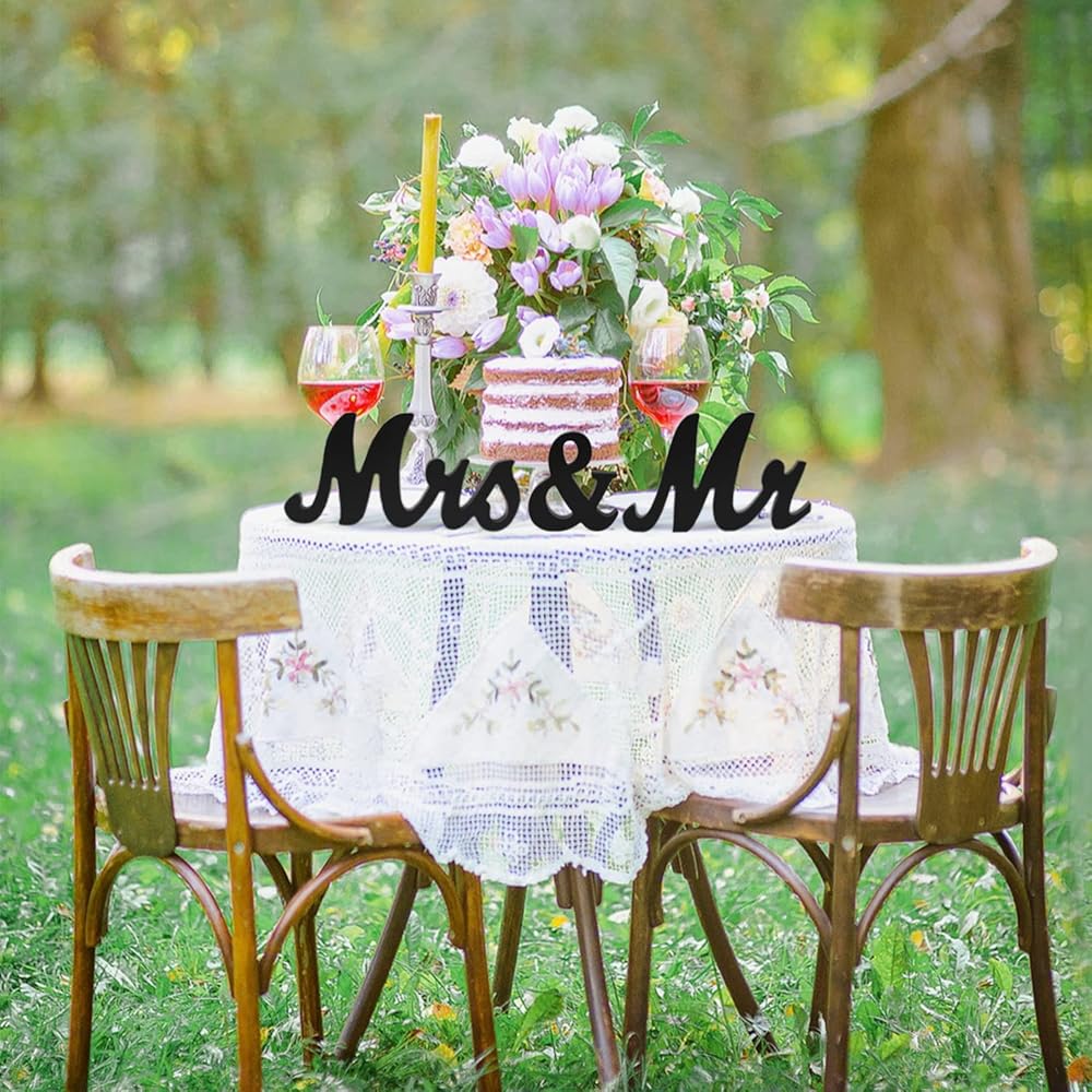 Sturdy Decoration ❤️: The thickness of mr. and mrs. sign is 3/4" which makes them have good fixation. The mr and mrs table decor can easily stand on the table and easily cope with indoor and outdoor party surrounding.