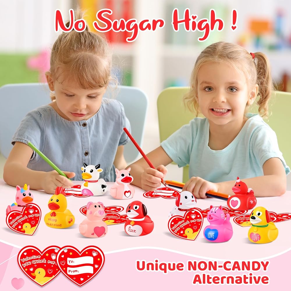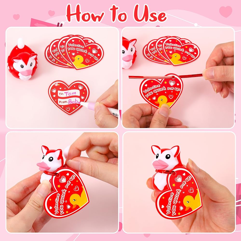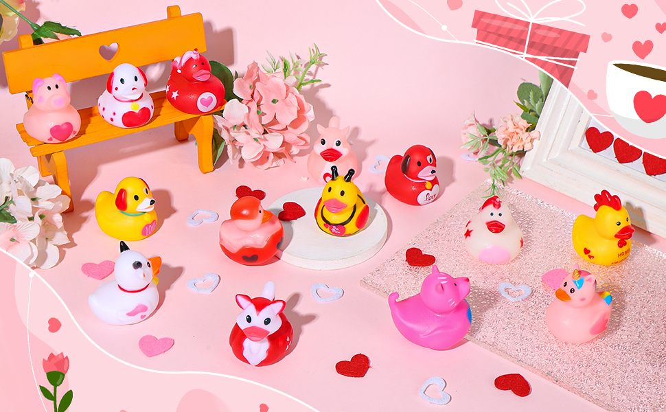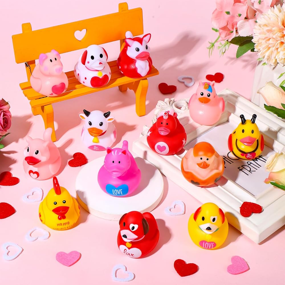 【هدية مثالية لعيد الحب】ألعاب البط المطاطية لعيد الحب هذه رائعة للفتيات والأولاد والأطفال والكبار، حيث تشارك المرح والبركة. إنها فكرة هدية فريدة من نوعها لمكافآت صف الأطفال، وتبادل الهدايا مع زملاء الدراسة، ومفضلات حفلات عيد الحب، وجوائز الألعاب وأعياد الميلاد. يمكن للجميع مشاركة المرح مع البط في عيد الحب بدلاً من مجرد التحية.