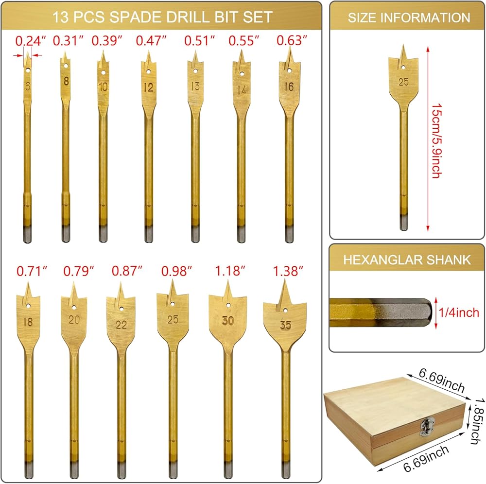 الوصف: يمكن استخدامها مع معظم المثاقب الكهربائية لقطع الثقوب المستقيمة أو المائلة في الخشب الصلب والخشب اللين والحبيبات الطرفية والحبيبات المتقاطعة والألواح المعزولة. المادة: تم تصميم لقم اتش اس اس لوضع دقيق واختراق سريع 1. هذه المجموعة من مثقاب تي اي المسطح لأعمال النجارة، مثقاب مسطح وحاد ومتين، يعمل بشكل جيد في النجارة، مضاد للانزلاق للمقبض السداسي. 2. 13 مقاس، مناسبة لمجموعة متنوعة من مواصفات الفتحة، مجموعة من جميع المقاسات لحل المشكلة. 3.8 مقاسات، مناسبة لمجموعة متنوعة من مواصفات الفتحة 3.6 مقاسات، مناسبة لمجموعة متنوعة من مواصفات الفتحة، 5. صندوق خشبي للتعبئة، مثقاب حماية، تخزين مريح، مظهر أنيق. 13المقاس: 6 مم 8 مم 10 مم 12 مم 13 مم 14 مم 16 مم 20 مم 22 مم 25 مم 30 مم 35 مم، 8 الحجم: 10 مم 12 مم 14 مم 16 مم 18 مم 20 مم 22 مم 25 مم 6 الحجم: 10 مم 12 مم 16 مم 18 مم 20 مم 25 مم