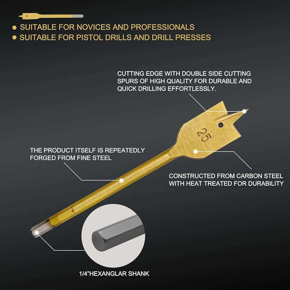 الوظيفة: لقم مجداف النجارة المسطحة الخاصة بنا هي أدوات متعددة الاستخدامات تسمح بالحفر الدقيق في أنواع مختلفة من الخشب، وتسجيل الحافة الخارجية للفتحة للحصول على حفر أكثر نظافة وسلاسة.
