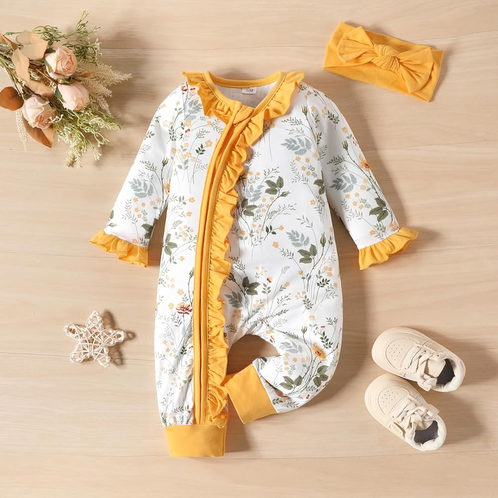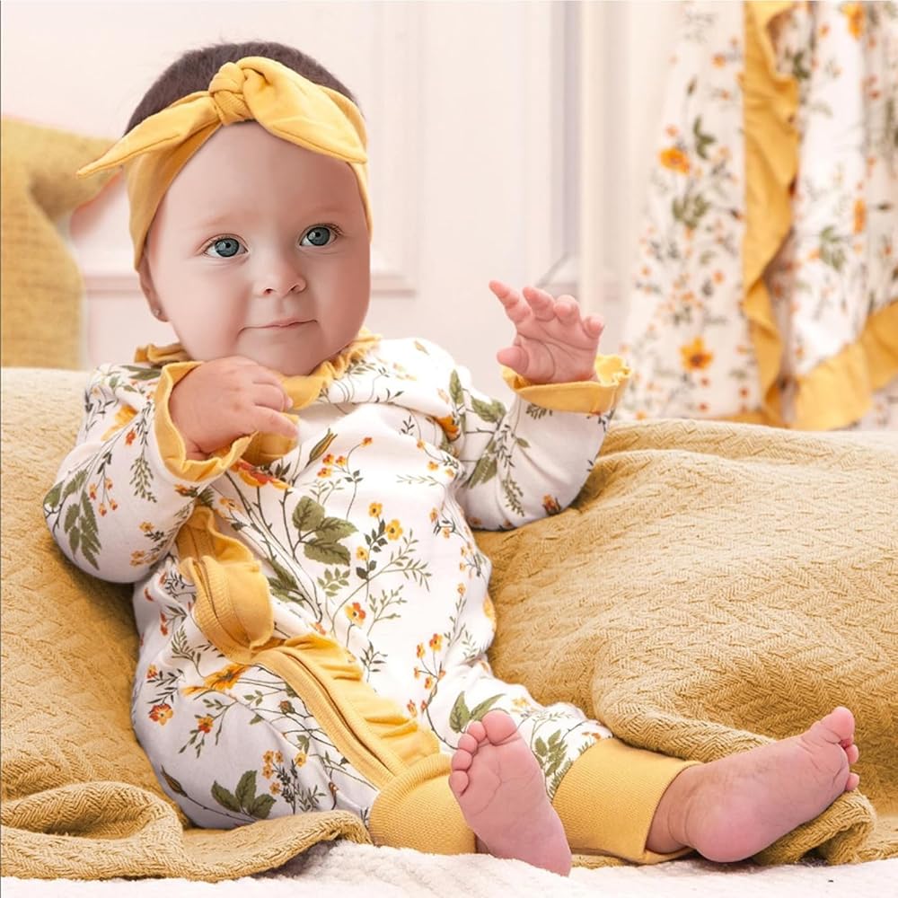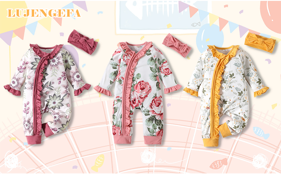 ✿ خامة ناعمة: رومبير لطيف للأطفال حديثي الولادة مصنوع من 90% قطن و10% بوليستر لملابس الأطفال المكشكشة. ملابس مريحة ومسامية وصديقة للبشرة ومريحة خاصة بملابس الأطفال.