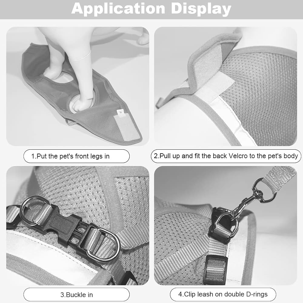 • 【بدون سحب، بدون خنق】: تتميز سرج الكلاب بتصميم على شكل سترة يوزع التوتر بالتساوي على الصدر والكتفين لمنع إجهاد الرقبة والاختناق. سرج الكلاب هذا يجعل من السهل عليك التحكم في كلبك.