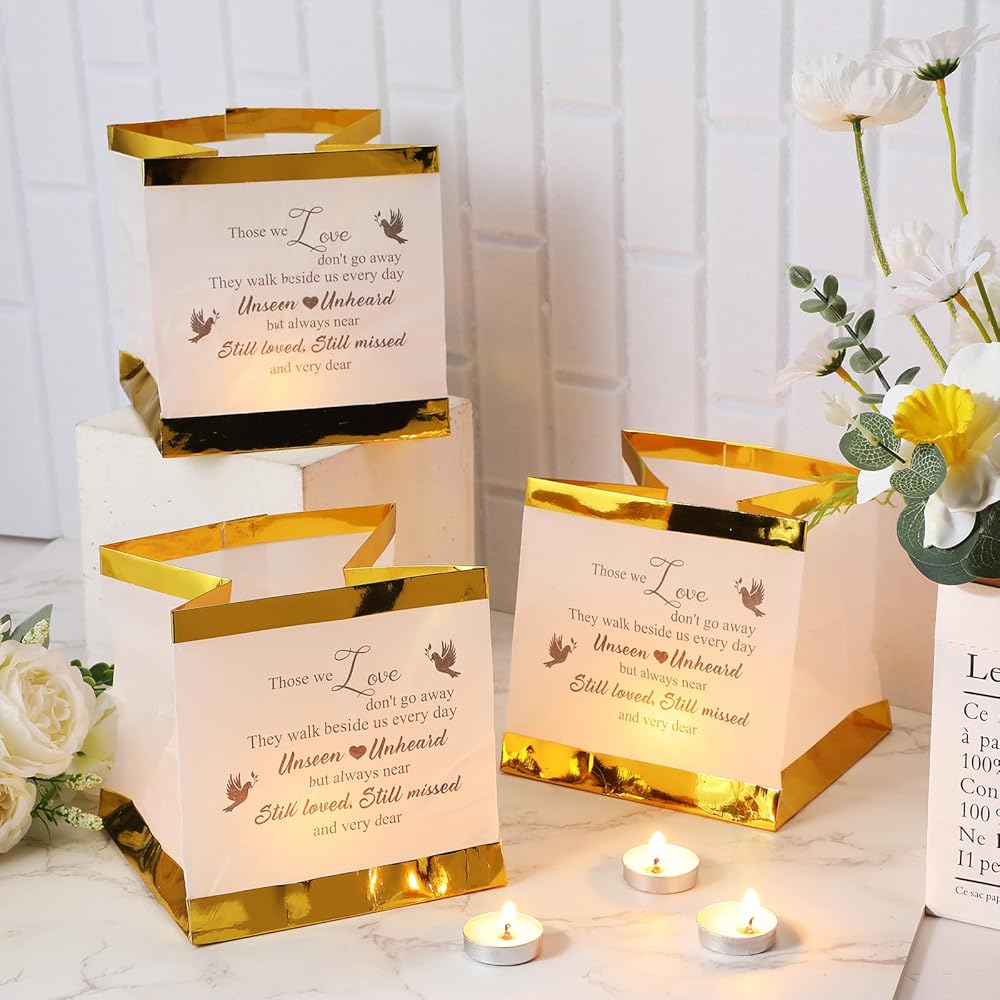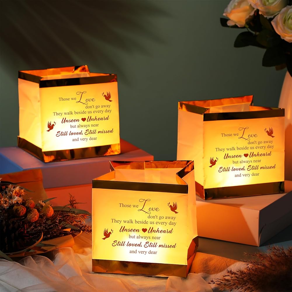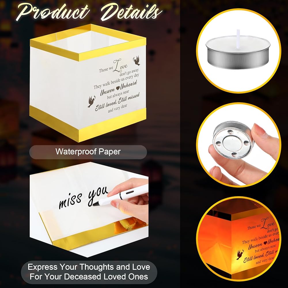 ذو مغزى وتذكاري: تم تصميم فانوس الماء الورقي الخاص بنا بكلمات مدروسة ودافئة على السطح، أنيق وجميل، مناسب للتعبير عن أفكارك وحبك لأحبائك المتوفين