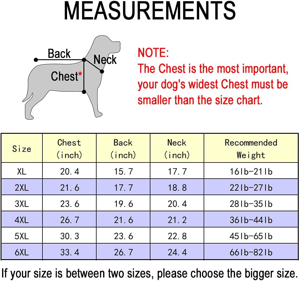 NOTE: Please be sure measure your dog before order, priority to reference chest girth (Don't too tight when measuring).