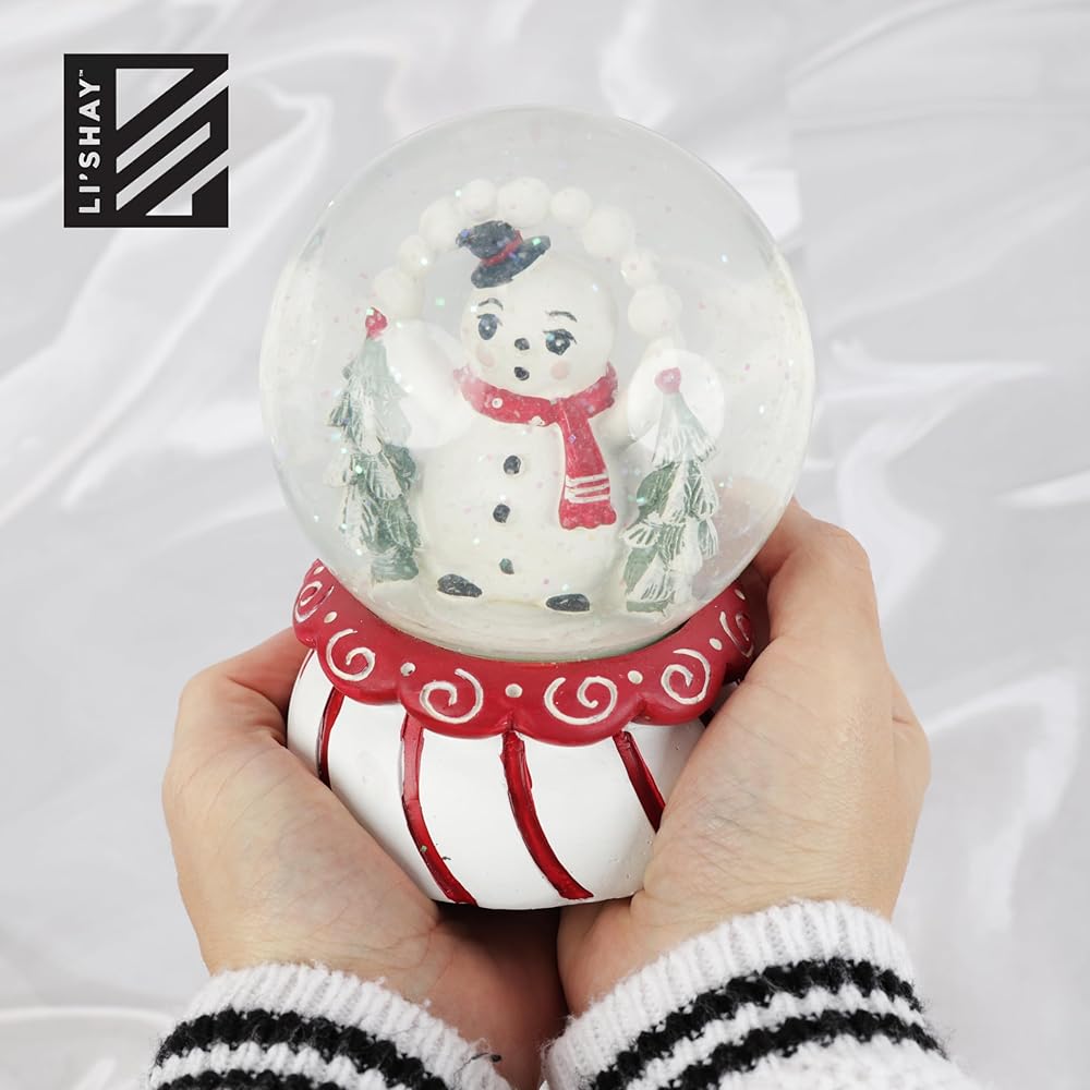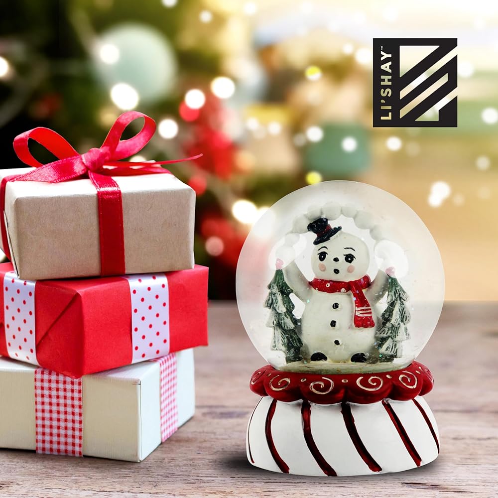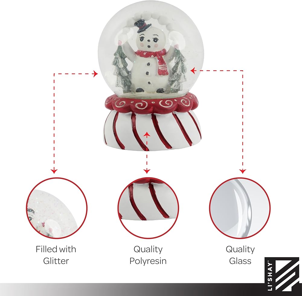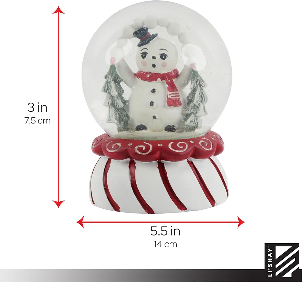 PERFECT SIZE - 5.5 Inch Snowglobe is the perfect size to display on your office desk or in your home. Each Snowglobe has a red and white striped base and a snowman inside with the most adorable expression on his face!