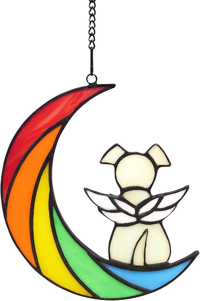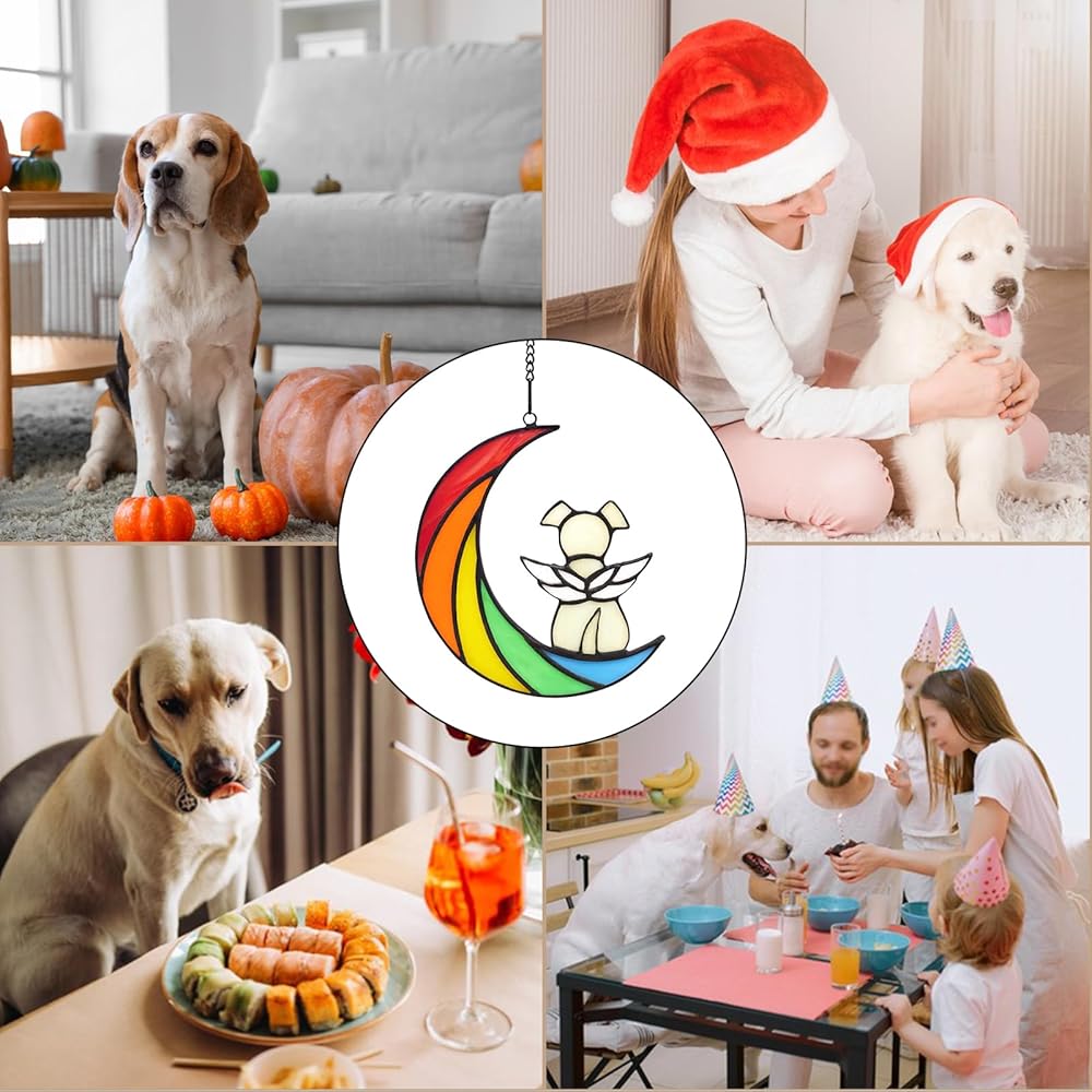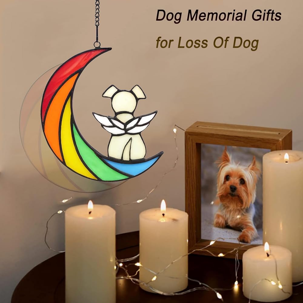 IAIGOGO هدايا تذكارية للكلاب لفقدان الكلب، جسر قوس قزح هدية تعاطف للحيوانات الأليفة، هدايا فجيعة للكلاب، هدايا وفاة الكلب، حلي تذكارية معلقة من الزجاج الملون لمحبي الكلاب