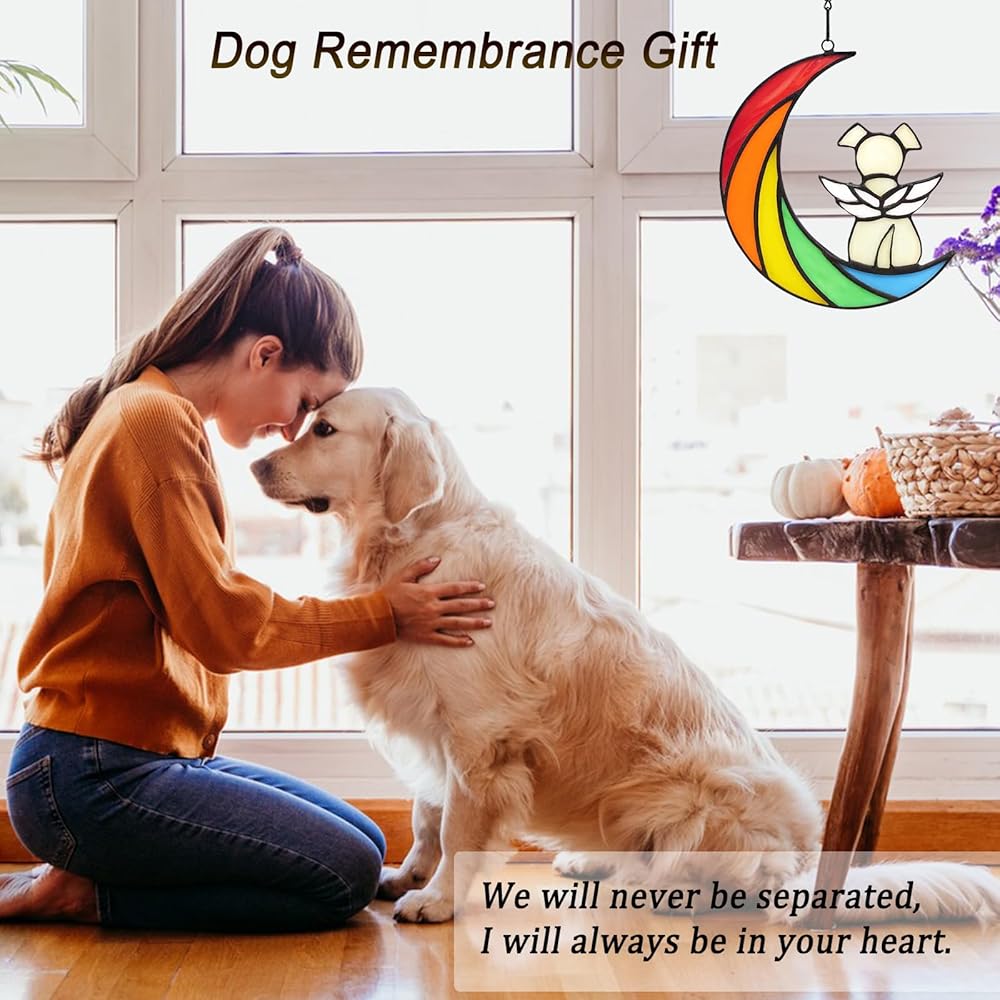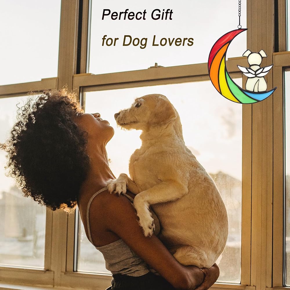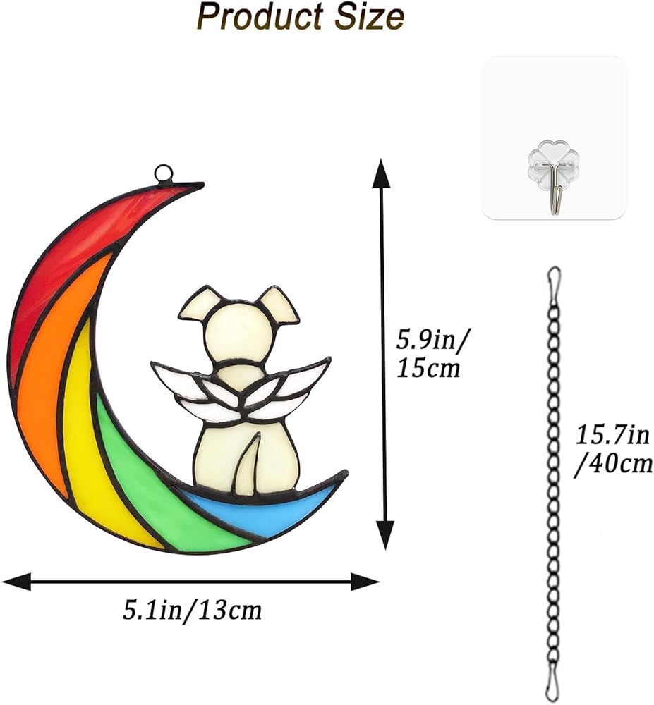• 【Easy to install】- The size of this stained glass window wall hanging dog bereavement gifts is 5.9 * 5.1in/15 * 13cm, and comes with a 15.7 in long hanging chain. You can easily hang it on windows, balconies, doorways, cars, cabinets, and more.