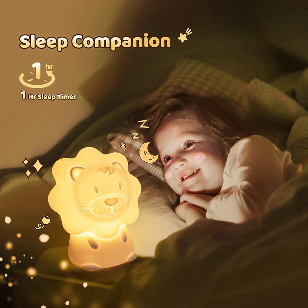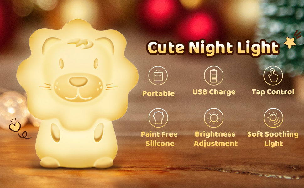 1 مصباح ليلي على شكل أسد للأطفال والرضع من جادنز، 1 كابل مايكرو يو اس بي، اتجاه واحد مصمم كبطاقة هدايا، معبأ في صندوق هدايا لطيف