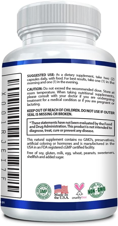 100% pure capsules, no additives, preservatives or artificial Ingredients. Made in the USA in a cGMP registered facility. Provides a 365 day money back guarantee.