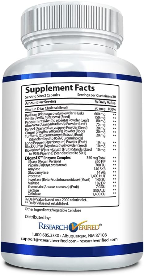 تم التحقق من الأبحاث في علاج القولون العصبي: تخفيف سريع وآمن وفعال من متلازمة القولون العصبي - مع البيوبيرين والإنزيمات الهاضمة الطبيعية للمساعدة على الهضم وتقليل إزعاج البطن، 60 كبسولة