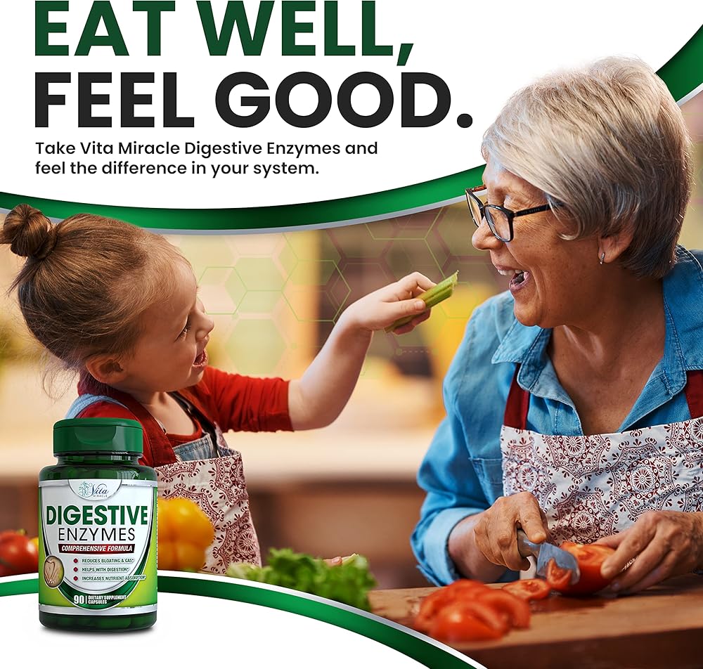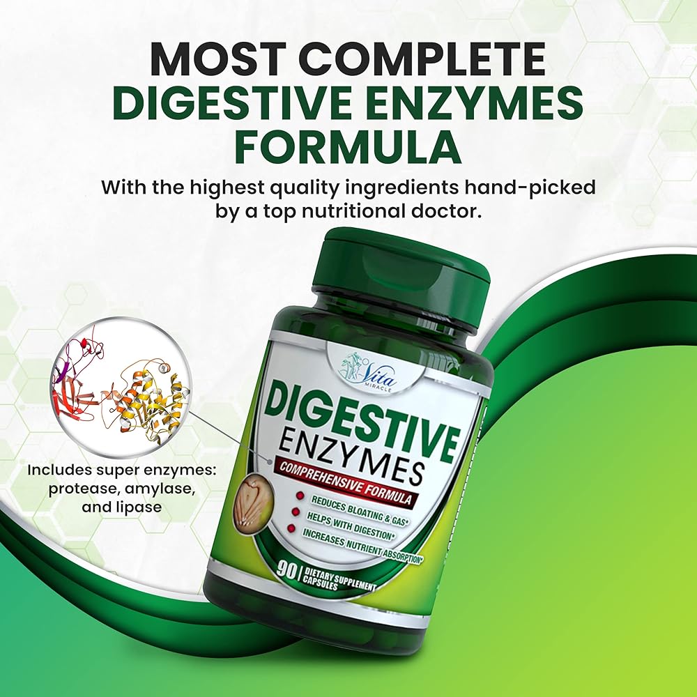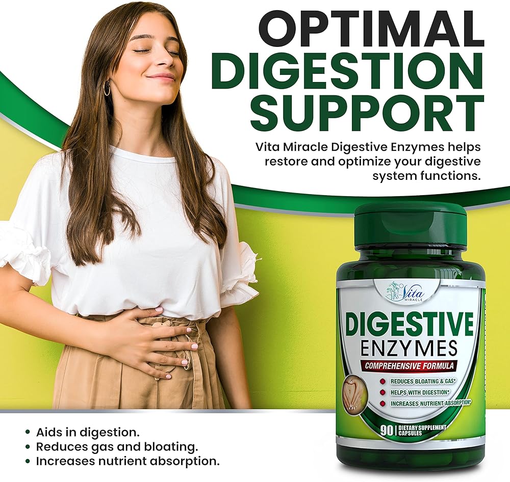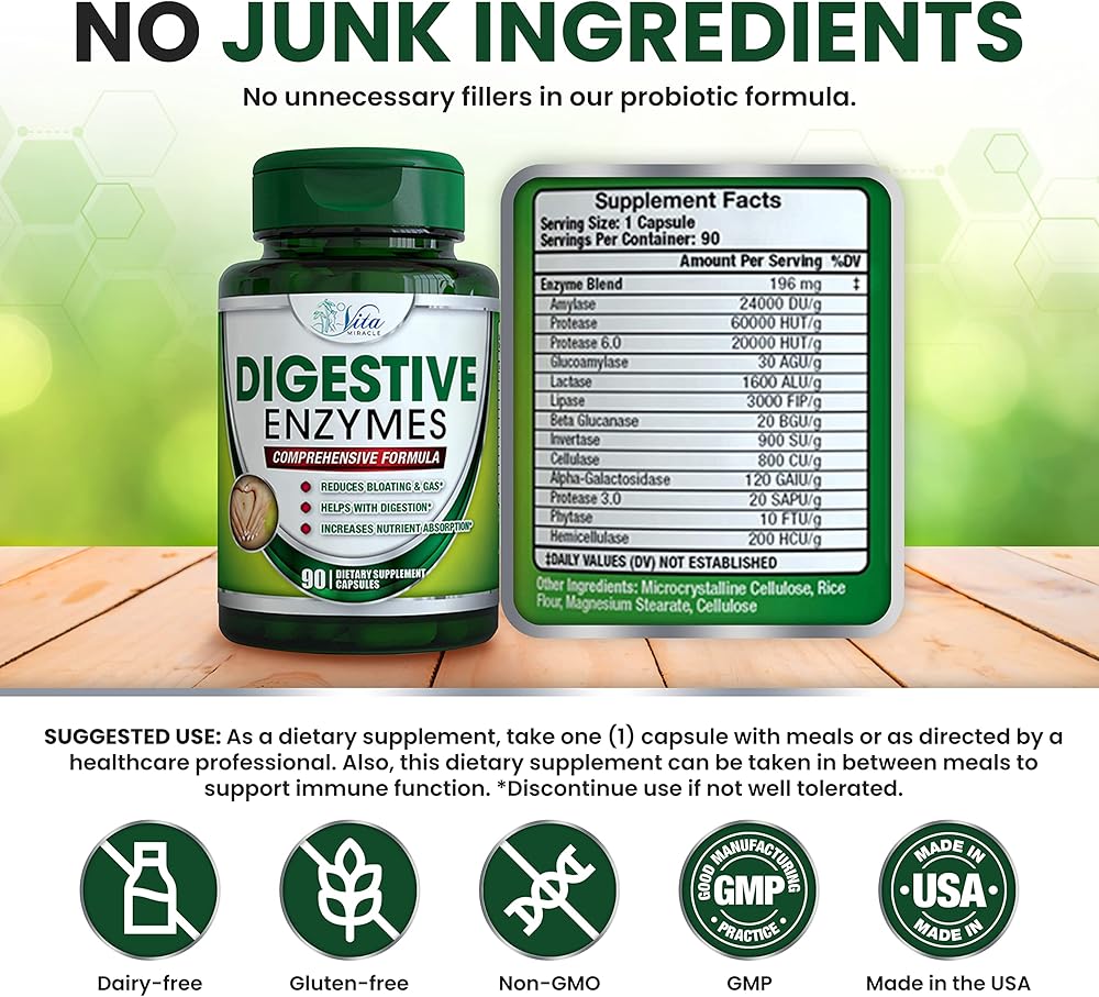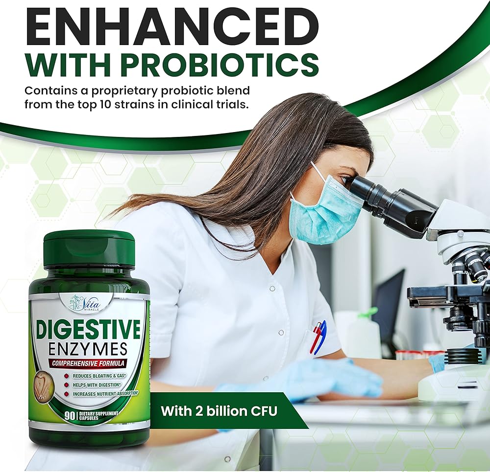 الإنزيمات الهاضمة مع البروبيوتيك والبريبايوتكس - إنزيمات مكملة للهضم، إنزيم الليباز، إنزيم الأميليز لاكتاز بروتياز، إنزيمات فائقة للنساء والرجال تساعد في الدفاع عن الغازات وانتفاخ البطن وعدم الراحة