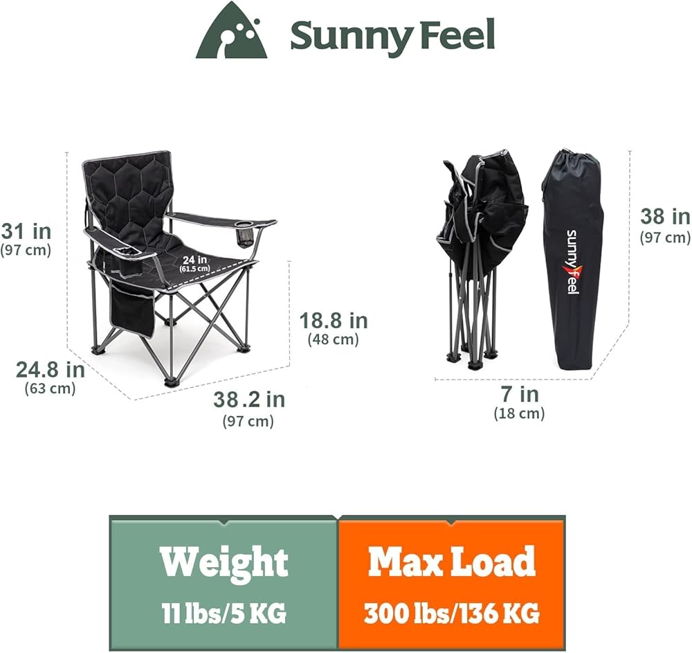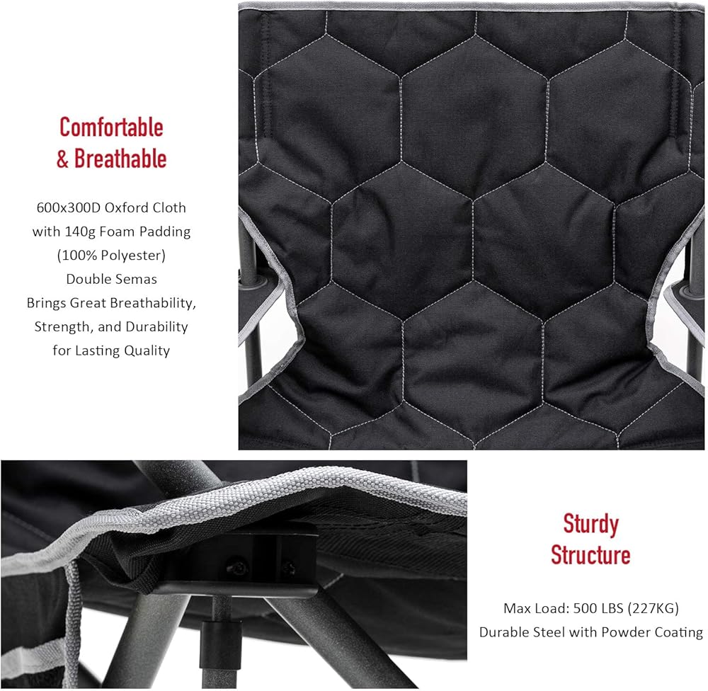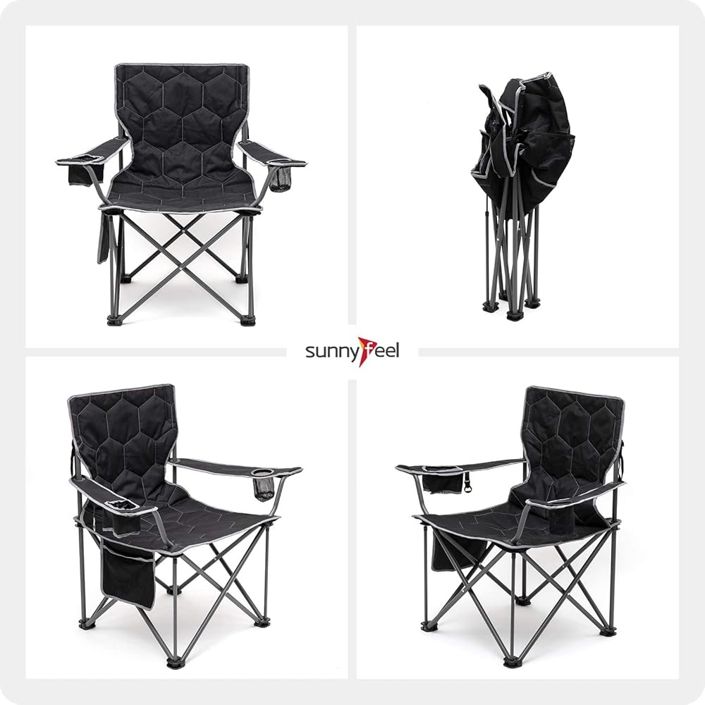 SUNNYFEEL XL كرسي تخييم كبير الحجم، كراسي تخييم قابلة للطي للبالغين شديدة التحمل وطويلة 500 رطل، كرسي حديقة محمول مبطن بذراع رباعي مع جيب للاستخدام في الهواء الطلق/النزهة/الشاطئ/الرياضة