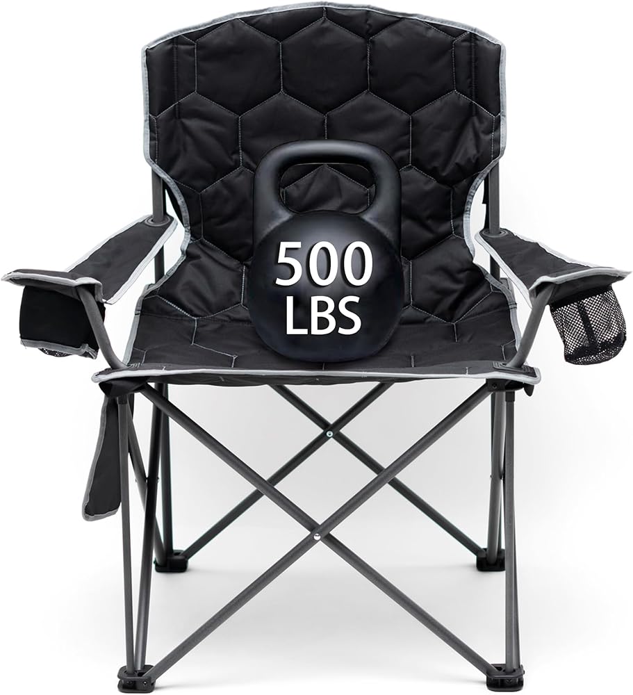 كبير الحجم وأقصى سعة للوزن: يبلغ حجم الكرسي القابل للطي الكبير 25 بوصة × 38 بوصة × 38 بوصة ويوفر هيكل الإطار الفولاذي المتين سعة وزن تصل إلى 300 رطل (136 كجم). هذا الكرسي الكبير والمبطن هو أفضل شريك لك لمساعدتك على الاسترخاء والراحة أستمتع برحلتك.